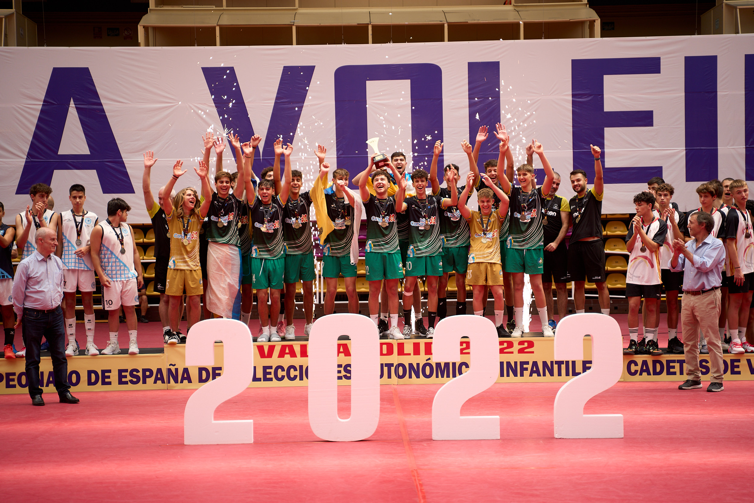Islas Canarias se convirtió en el campeón de España cadete masculino al vencer en la gran final a Galicia por 3-1 (23-25/25-18/25-15/27-25). Los canarios remontaron el primer set vencido por los gallegos para controlar el resto del encuentro. Los insulares supieron frenar el intento de reacción gallego para asegurar la victoria en un ajustado cuarto parcial y conquistar el cetro nacional. Cataluña se subió al tercer puesto del podio al derrotar a Andalucía en la final de consolación por 3 – 1 (23-25/25-19/25-22/25-18). La selección andaluza aprovechó sus opciones en el primer set para tomar ventaja, pero la reacción de los catalanes les permitió voltear el marcador para conquistar la medalla de bronce.