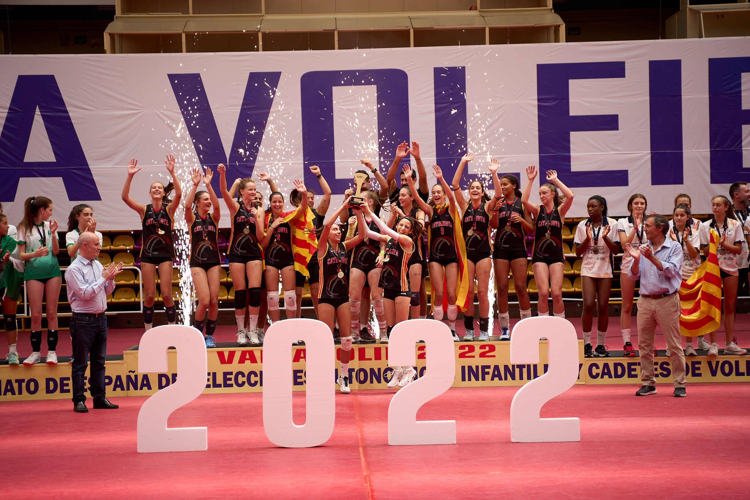 Cataluña logró el doblete en categorías femeninas al vencer en la competición Cadete Femenina a Madrid en un vibrante encuentro resuelto por 3-1 (25-13/12-25/27-25/25-22) en el marcador. La igualdad fue máxima en los tres primeros sets y sólo pudo ser rota en el agónico desenlace del tercero, más allá del punto 25. Cataluña aprovechó la dinámica para controlar el cuarto y evitar que las madrileñas forzasen el tiebreak.