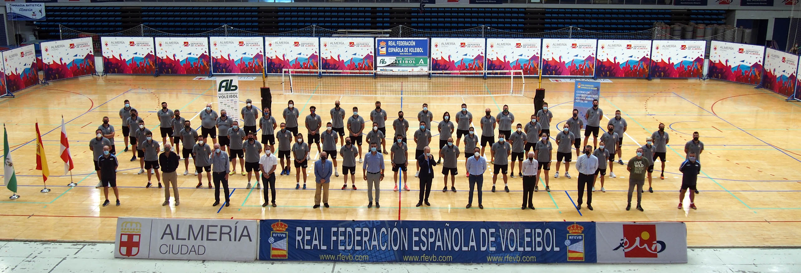 El presidente de la RFEVB, Agustín Martín Santos, y el alcalde de Almería, Ramón Fernández Pacheco presidieron el acto de clausura del Curso de Entrenadores de Nivel III que se ha celebrado en su fase presencial en Almería.