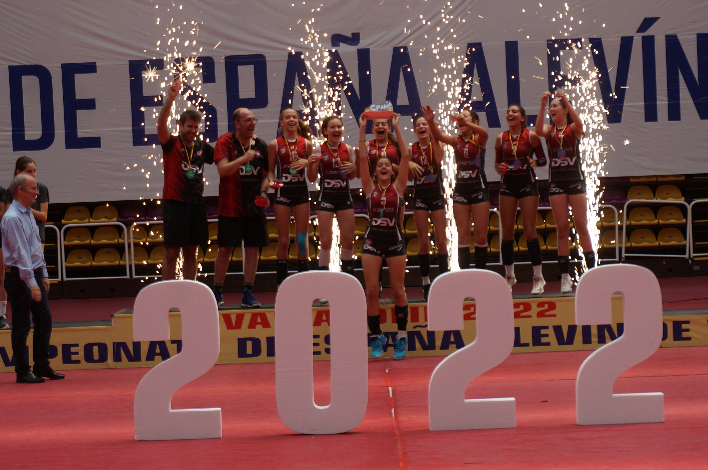En categoría femenina DSV CV Sant Cugat logró el título nacional al superar en la final a Colegio San Ignacio en una sensacional y emocionante final controlada en todo momento por las barcelonesas (25-13/25-16). En el tercer lugar del podio se situó CV Esplugues, que mejoró la cuarta plaza del año anterior. Las catalanas superaron en la final de consolación a CV San Roque en un ajustado encuentro resuelto en el desempate.