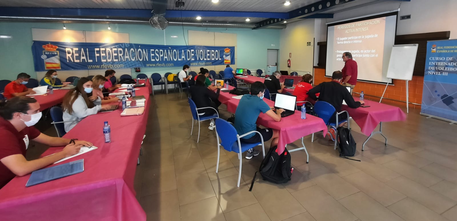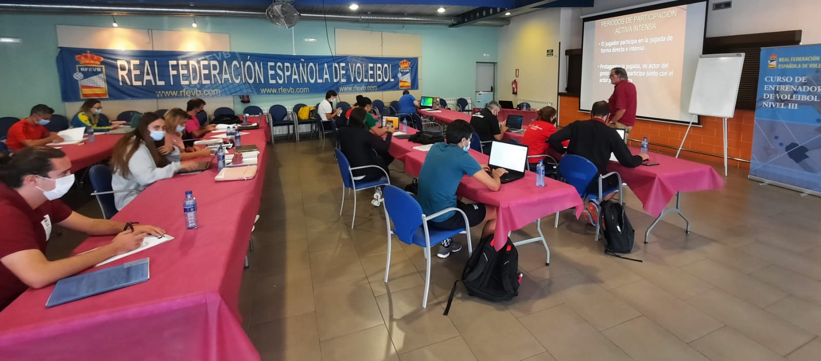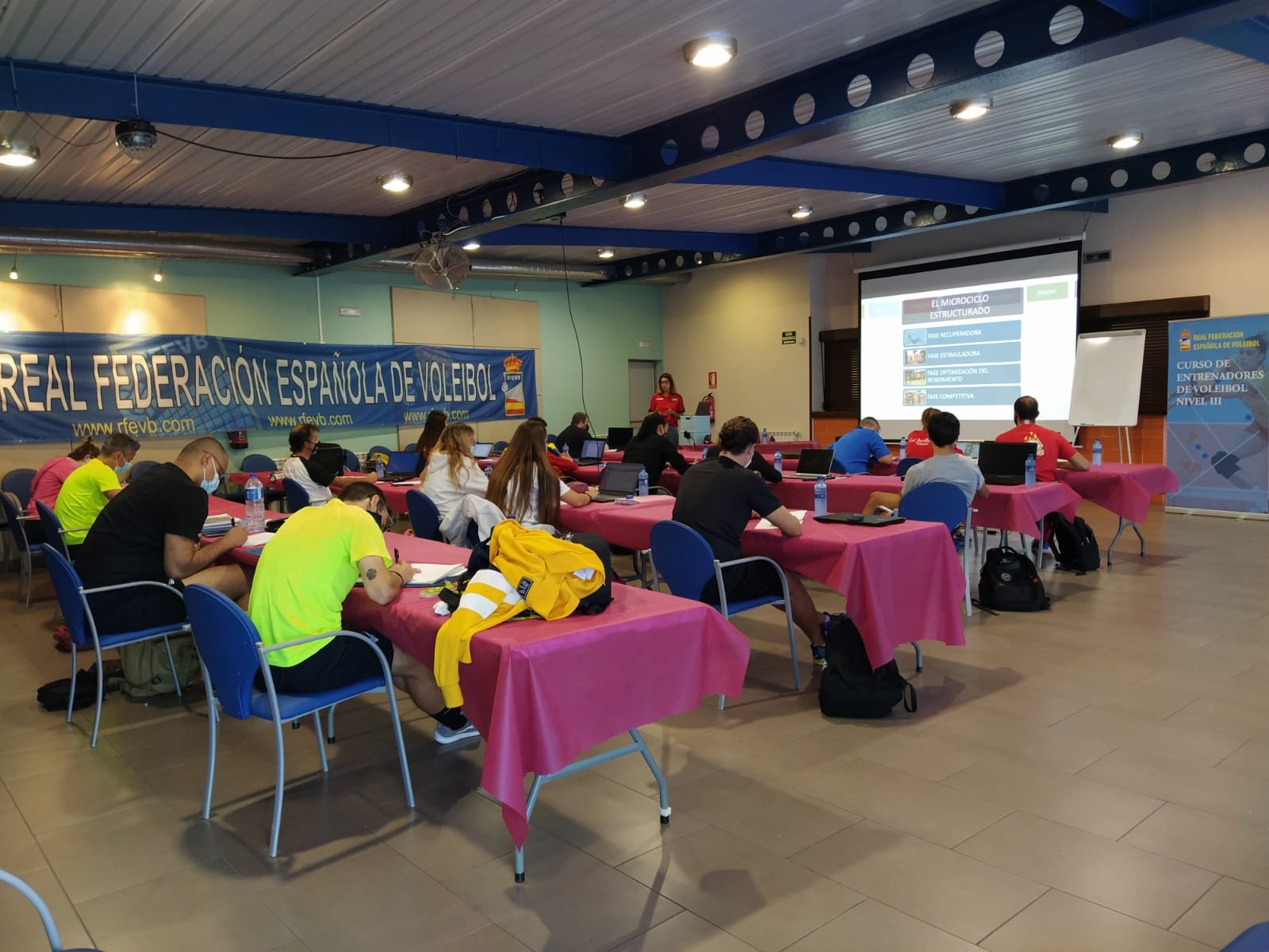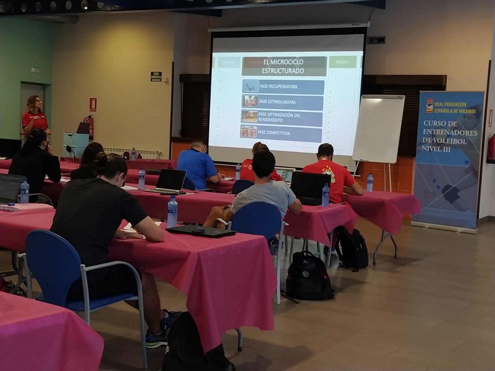 Las clases de planificación, impartida por Sara Vila, acapararon gran parte de la atención del tramo medio del curso. En esta parte final de las clases del curso, las asignaturas de planificación, psicología, medicina deportiva y Preparación Fisica completan el itinerario curricular de la fase presencial, que se completará con la fase online, clases en la plataforma zoom, que junto con los trabajos y exámenes finales completará la exhaustiva preparación de los alumnos de los Cursos de Nivel III de entrenadores.