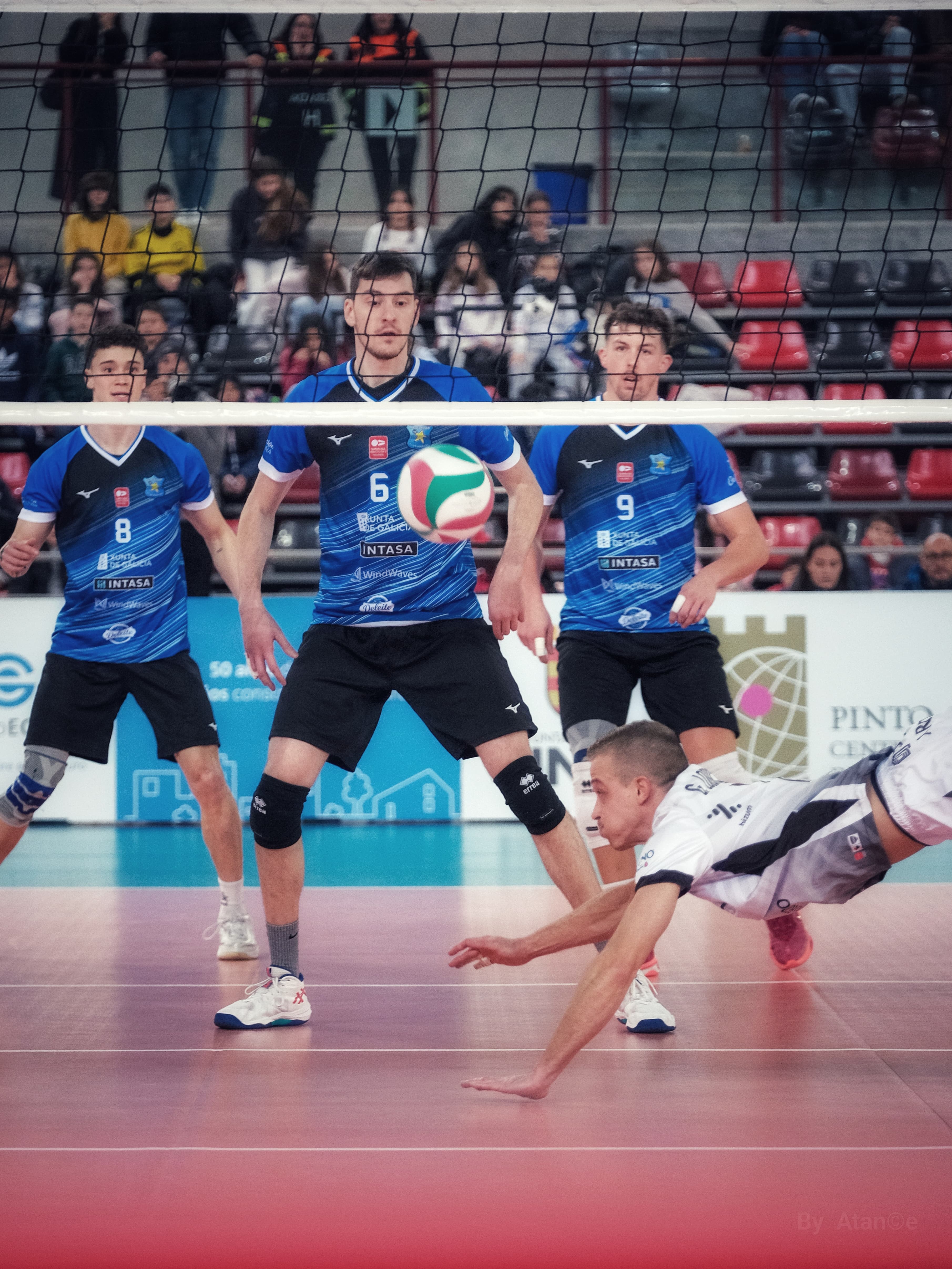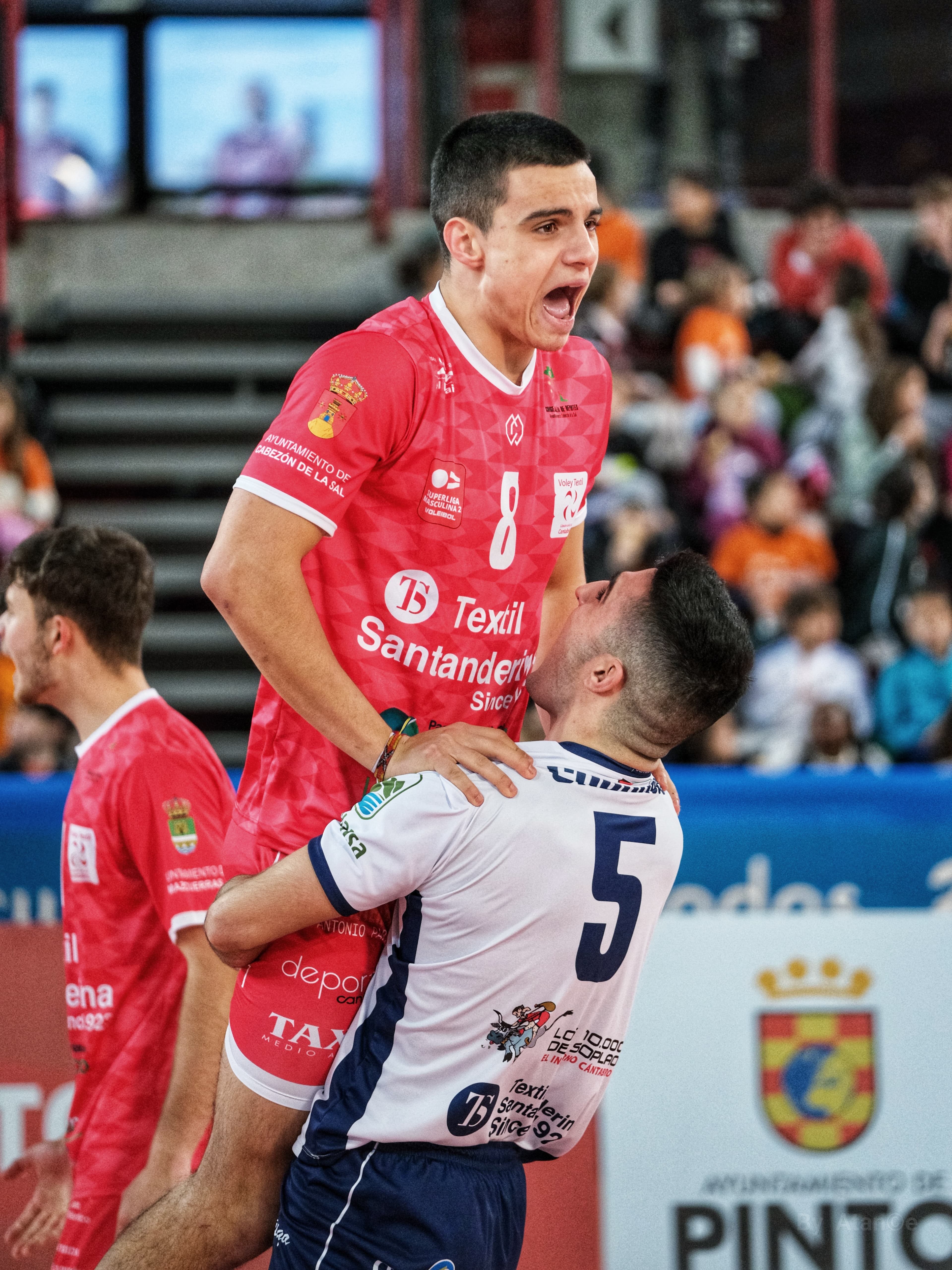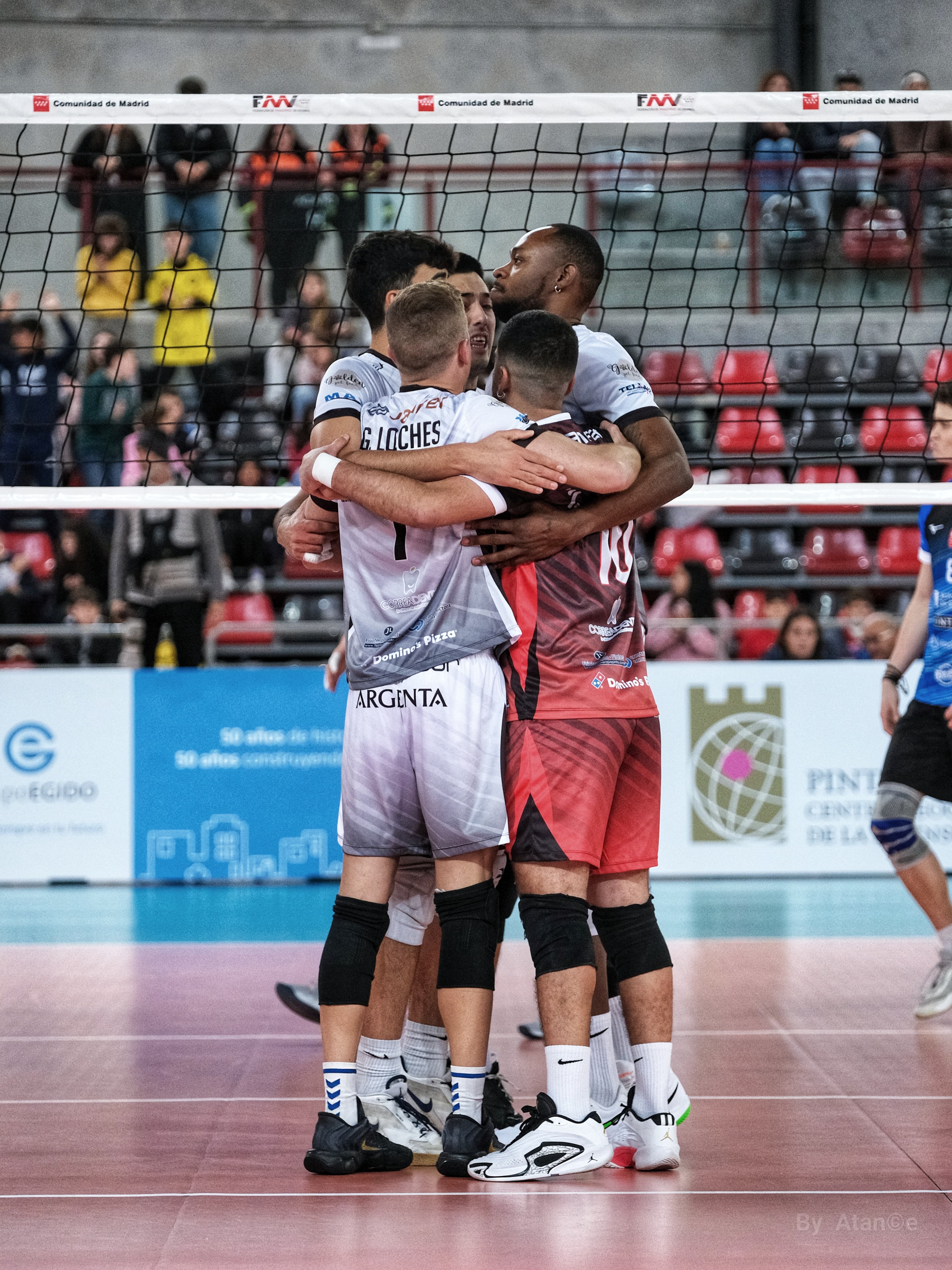 Hasta el 28-26 llegó el marcador en la primera manga, lo que demostró la igualdad patente entre dos equipos que no resolverían la pugna hasta el desempate final. Intasa San Sadurniño quería dar ‘guerra’ al anfitrión y, con el poderío ofensivo de Wunschmann, Blanco y Gomes, lograrían igualar la contienda (22-25). La respuesta de Pinto fue volver a tomar la delantera en otro set resuelto por la diferencia de dos (27-25), lo que no intimidaría a un San Sadurniño capaz de no perder el pulso, igualar en el cuarto set (22-25), y meterse el partido en el bolsillo en el tie break (8-15).