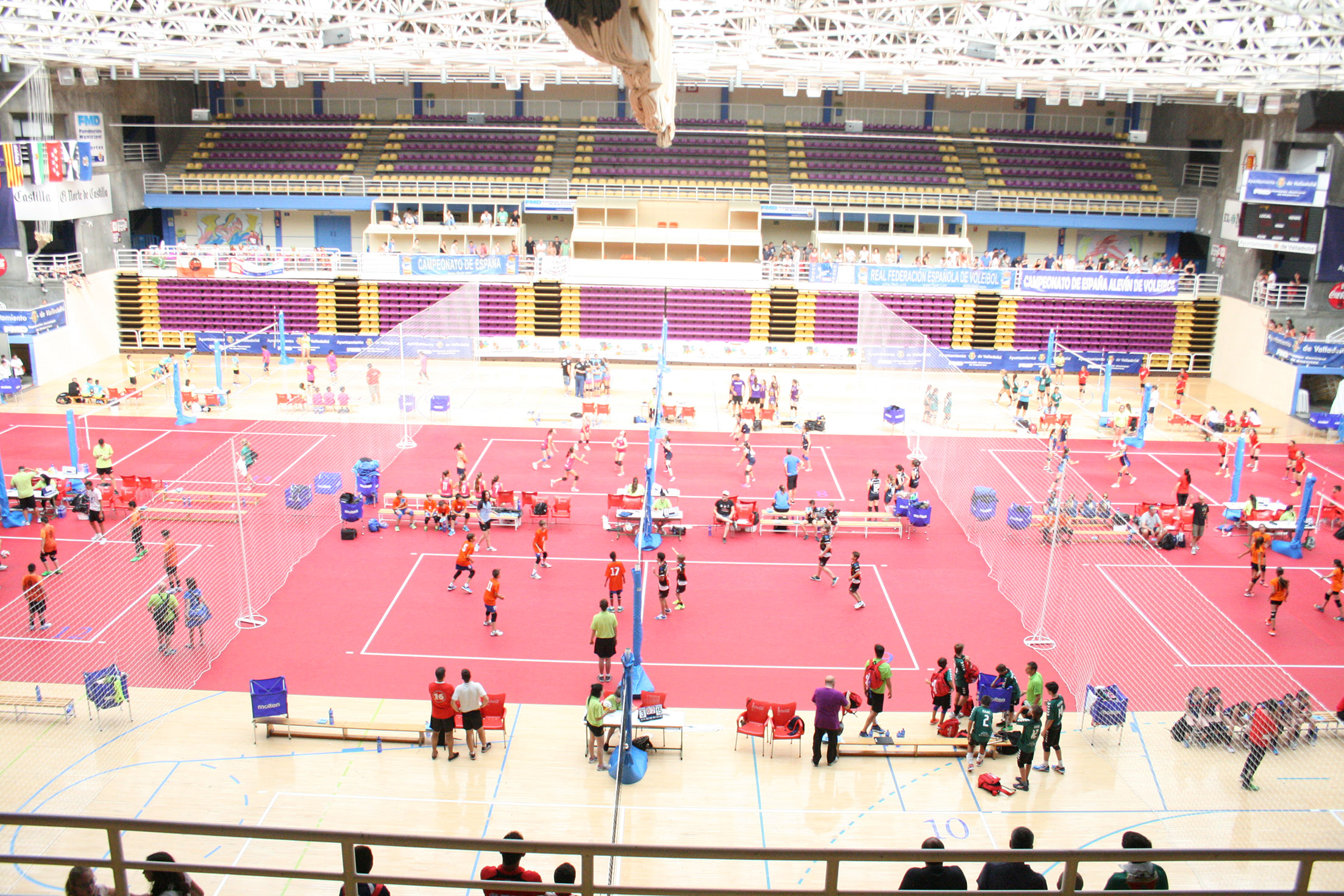 El Campeonato de España Alevín comenzó este viernes en Valladolid con una espectacular, intensa y emocionante jornada que lleno de voleibol las 16 pistas simultáneas del Polideportivo Pisuerga de Valladolid. El trabajo, esfuerzo e ilusión de los cerca de 800 participantes del torneo marcaron el desarrollo de las dos competiciones en liza, que definieron el nombre de los conjuntos que lucharán por el título.