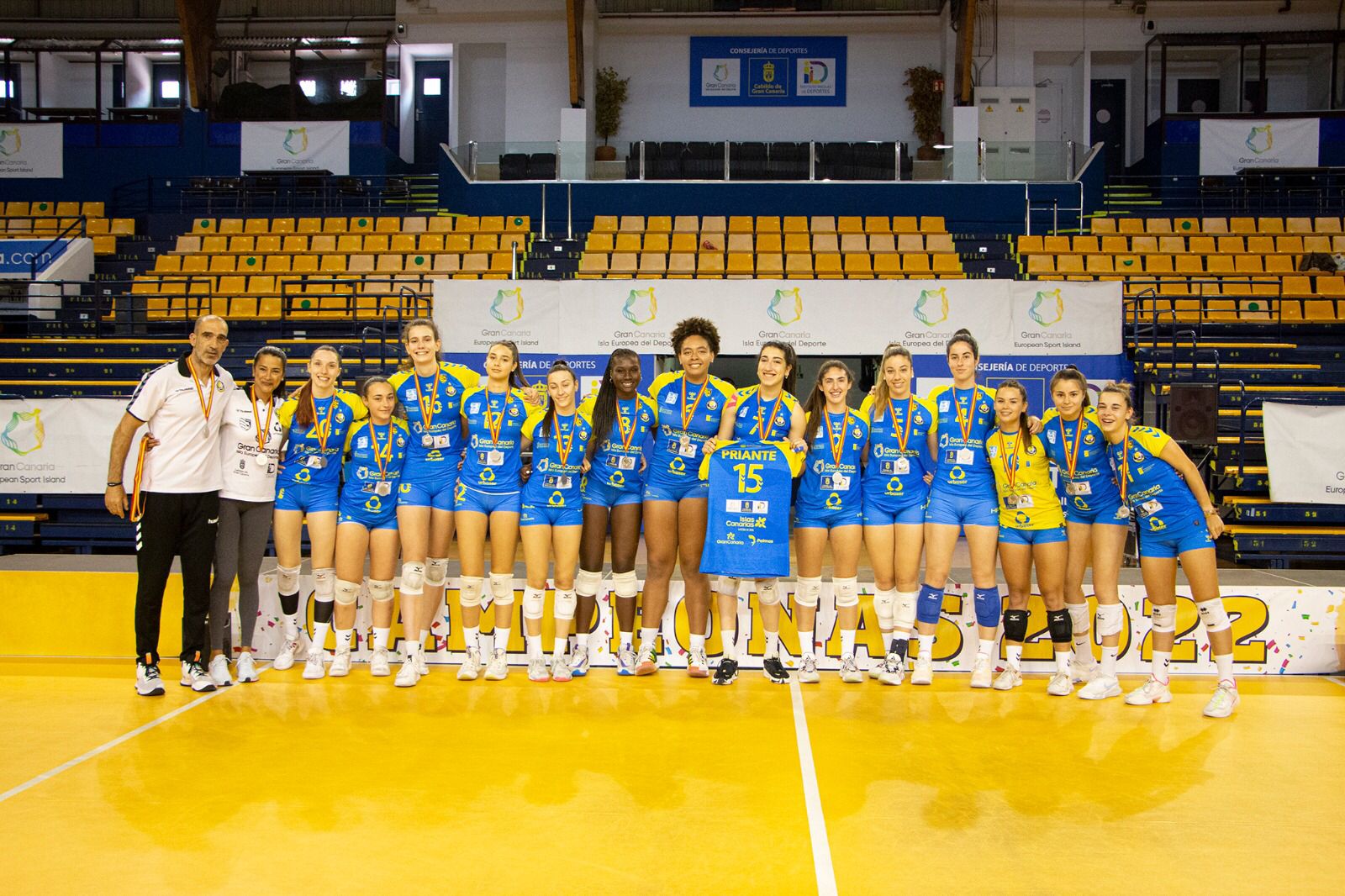 El CCO 7 Palmas comenzaba dominando el marcador en el Centro Insular de Deportes, siendo muy contundentes en saque y ataque. Las madrileñas reaccionaron a tiempo con grandes acciones en bloqueo y cogiendo confianza en defensa, hasta colocarse a tan solo dos puntos de las grancanarias. Un remate de Irene Osayande sumó el primer set a favor del bloque amarillo.