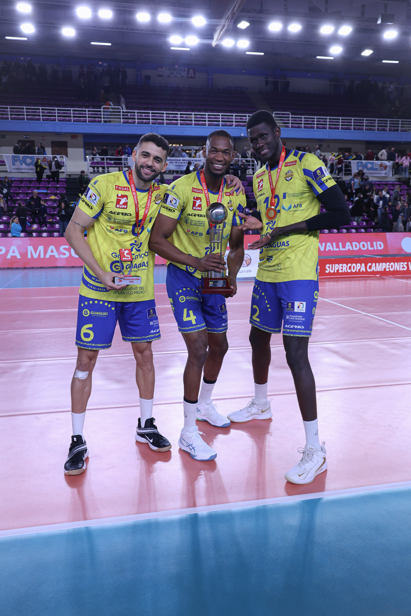 CV Guaguas logró imponerse este lunes, 29 de diciembre, a Grupo Herce Soria Voleibol en un Pabellón Pisuerga con más de 4000 asistentes (26-24/25-23/25-23). Los grancanarios consiguen en Valladolid una cuarta Supercopa que es, a su vez, su duodécimo título. Por su parte, los sorianos no pudieron materializar la revancha de 2023 y firman su segundo subcampeonato. El encuentro, arbitrado por Javier Pedrosa y Quin Ventura, llevó emoción y buen voleibol al entregadísimo público vallisoletano en el marco de la Copa de España 2025.