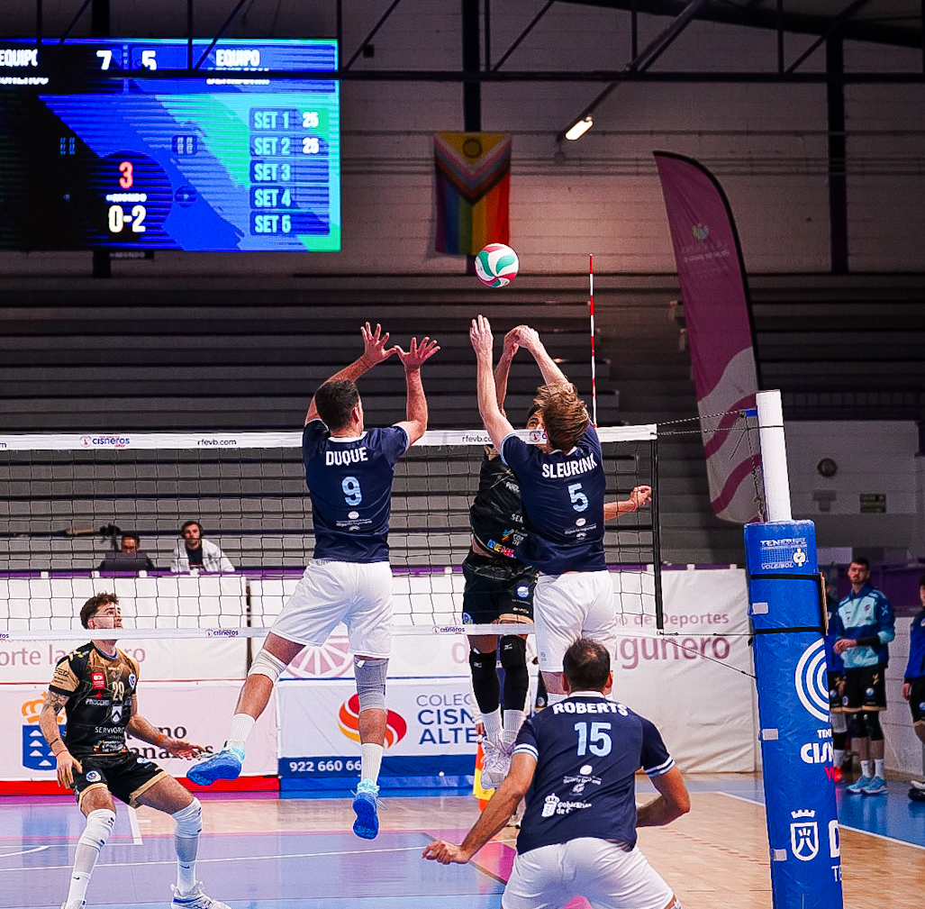 La jornada empezó con un verdadero partidazo entre Cisneros La Laguna y Servigroup Playas de Benidorm (3-2). Los visitantes consiguieron ganar las dos primeras mangas y ya se frotaban las manos con lo que olía a victoria a domicilio. Sin embargo, los chicharreros no dieron su brazo a torcer y pelearon con uñas y dientes para forzar el tie break. El impulso de la grada hizo el resto en el momento decisivo, cuando sellaron el partido con victoria para sacar dos puntos de un envite que parecía una derrota segura.