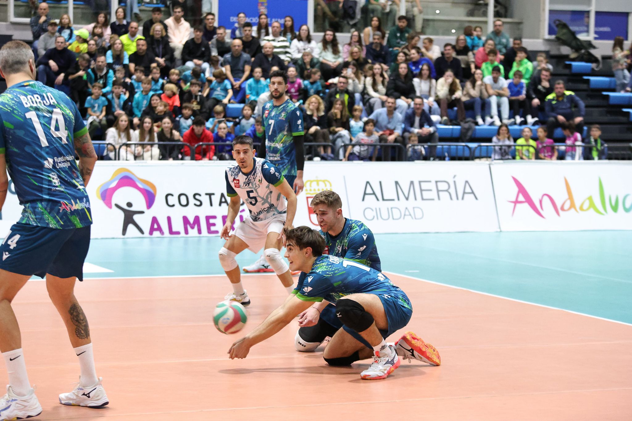 Pamesa Teruel Voleibol se llevó en el desempate un choque vibrante en la pista de Unicaja Costa de Almería. El Pabellón Moisés Ruiz presentó un sensacional aspecto, lleno, para rememorar batallas pasadas entre dos de los dominadores del vóley nacional. Los almerienses, pese a las bajas, rozaron la victoria tras remontar el primer set y ponerse con ventaja. Los turolenses forzaron el tiebreak y ahí la contundencia ofensiva visitante decantó la balanza.