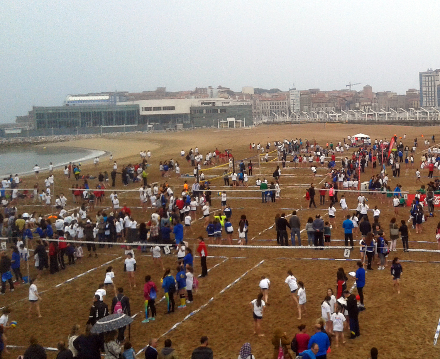 Ni siquiera la climatología apagó la alegría de los jóvenes que participaron en la segunda jornada de los Juegos Deportivos de Voley Playa que se celebraron en la Playa de Poniente de Gijón. Como ocurriese la semana anterior, cientos de jóvenes acudieron a la llamada del voley playa y pese a la lluvia y el frío que aparecieron en la localidad asturiana, los entusiasmados participantes disfrutaron de un día para el recuerdo.