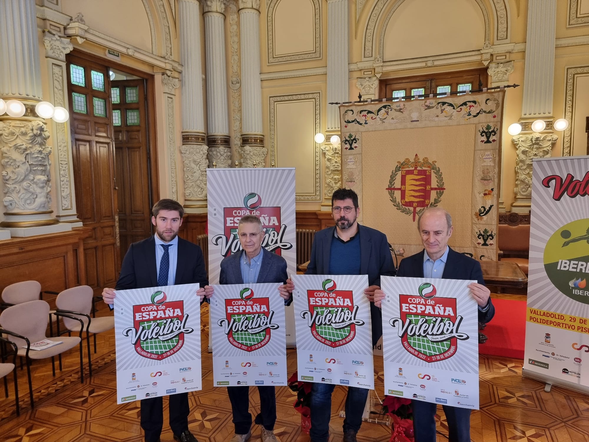 El concejal de Participación Ciudadana y Deportes, Alberto Bustos, y el presidente de la Real Federación Española de Voleibol, Agustín Martín Santos han presentado la Copa de España de Voleibol Junior, Juvenil y Cadete que se celebrará en Valladolid del 27 al 30 de diciembre, con récord de participantes. Al acto celebrado en el Ayuntamiento de Valladolid también han asistido el presidente de la Federación de Voleibol de Castilla y León, Antonio Sangrador, y distintos miembros de la Corporación Municipal.
