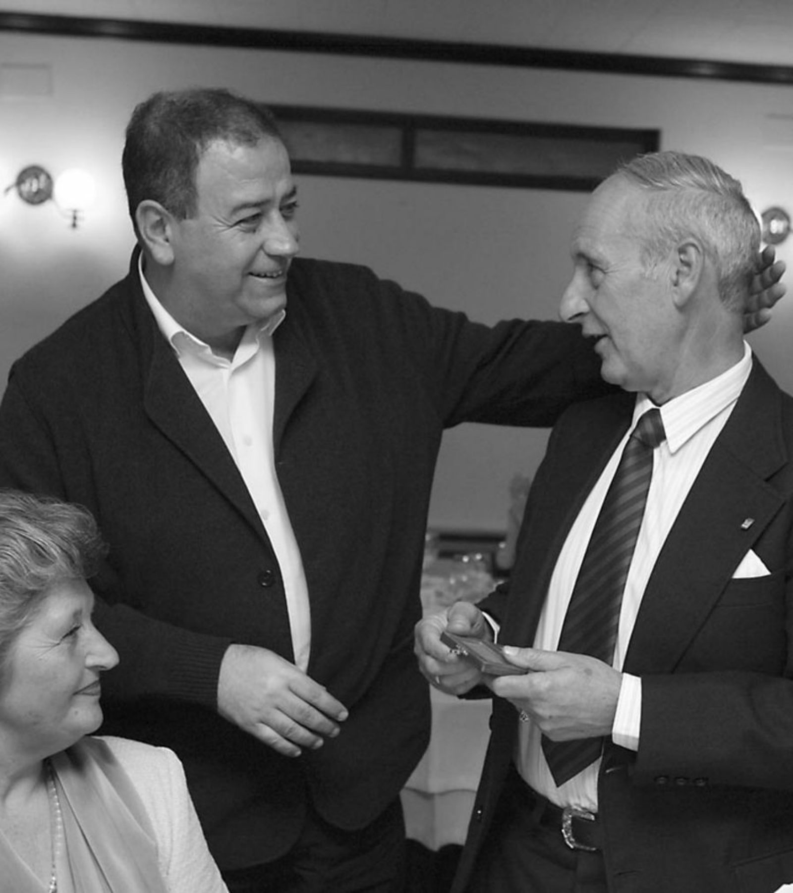 Fotografía La Nueva España. Justo González, a la derecha, recibe una distinción de manos del entonces director general de Deportes del Principado de Asturias, Daniel Gutiérrez Granda.