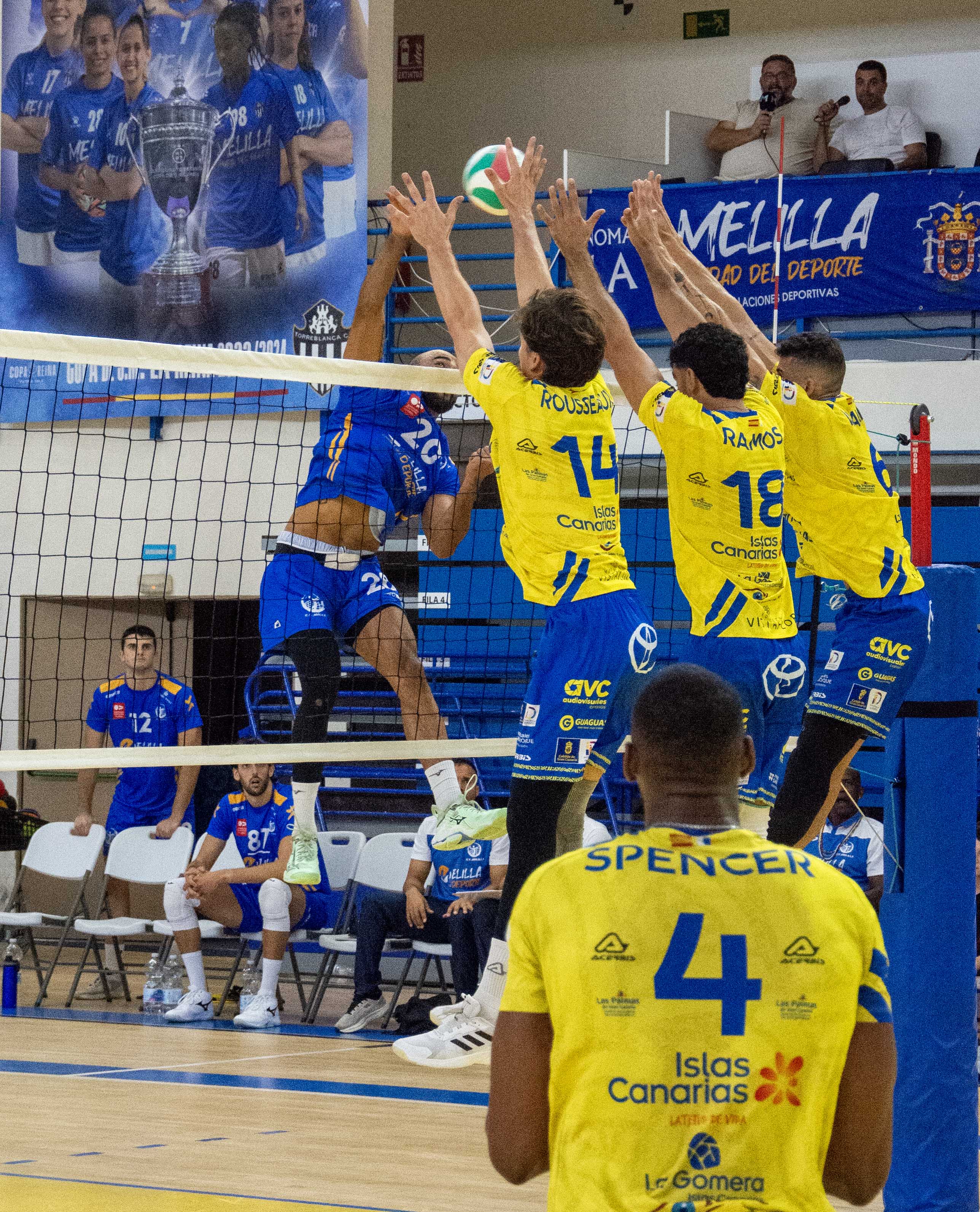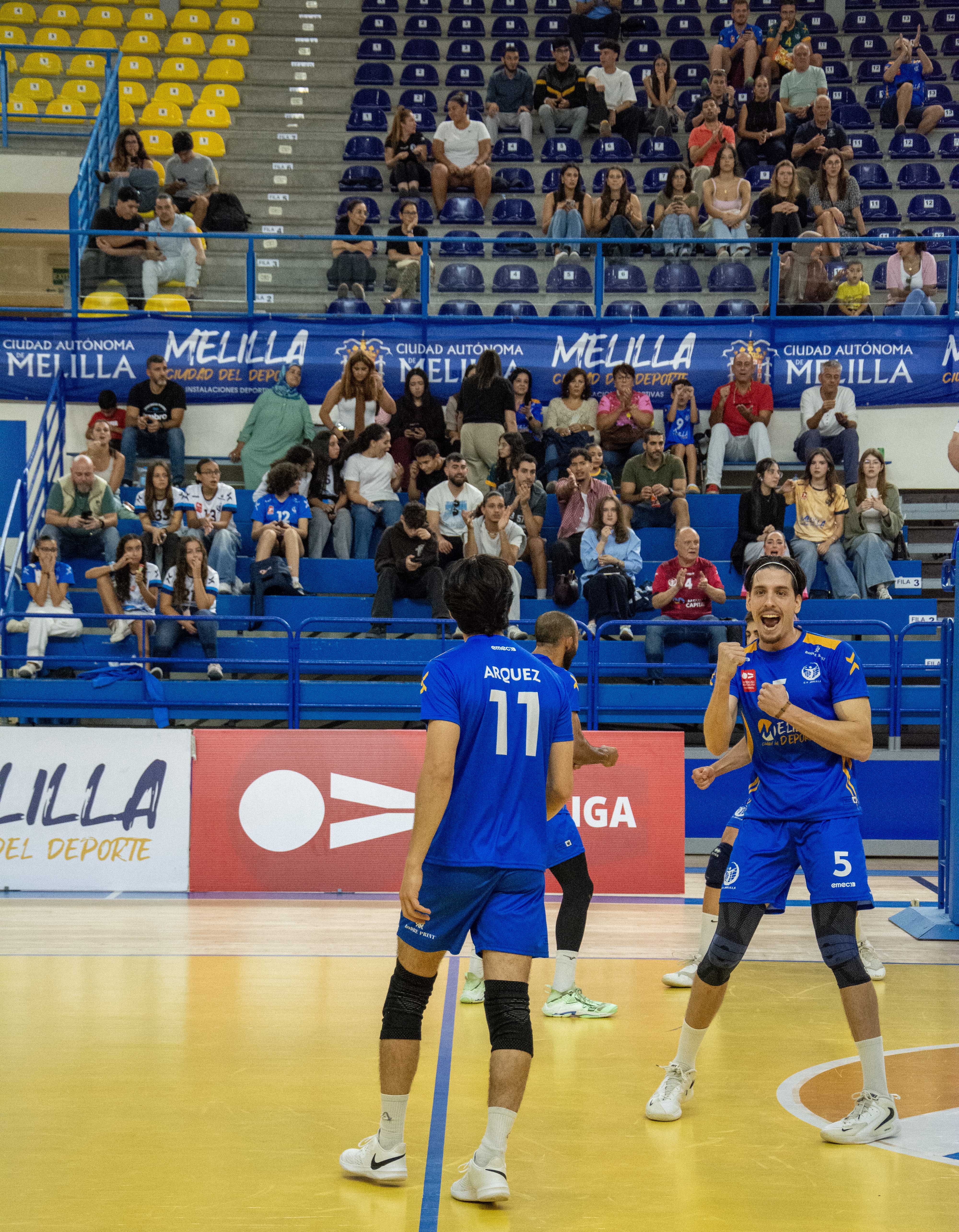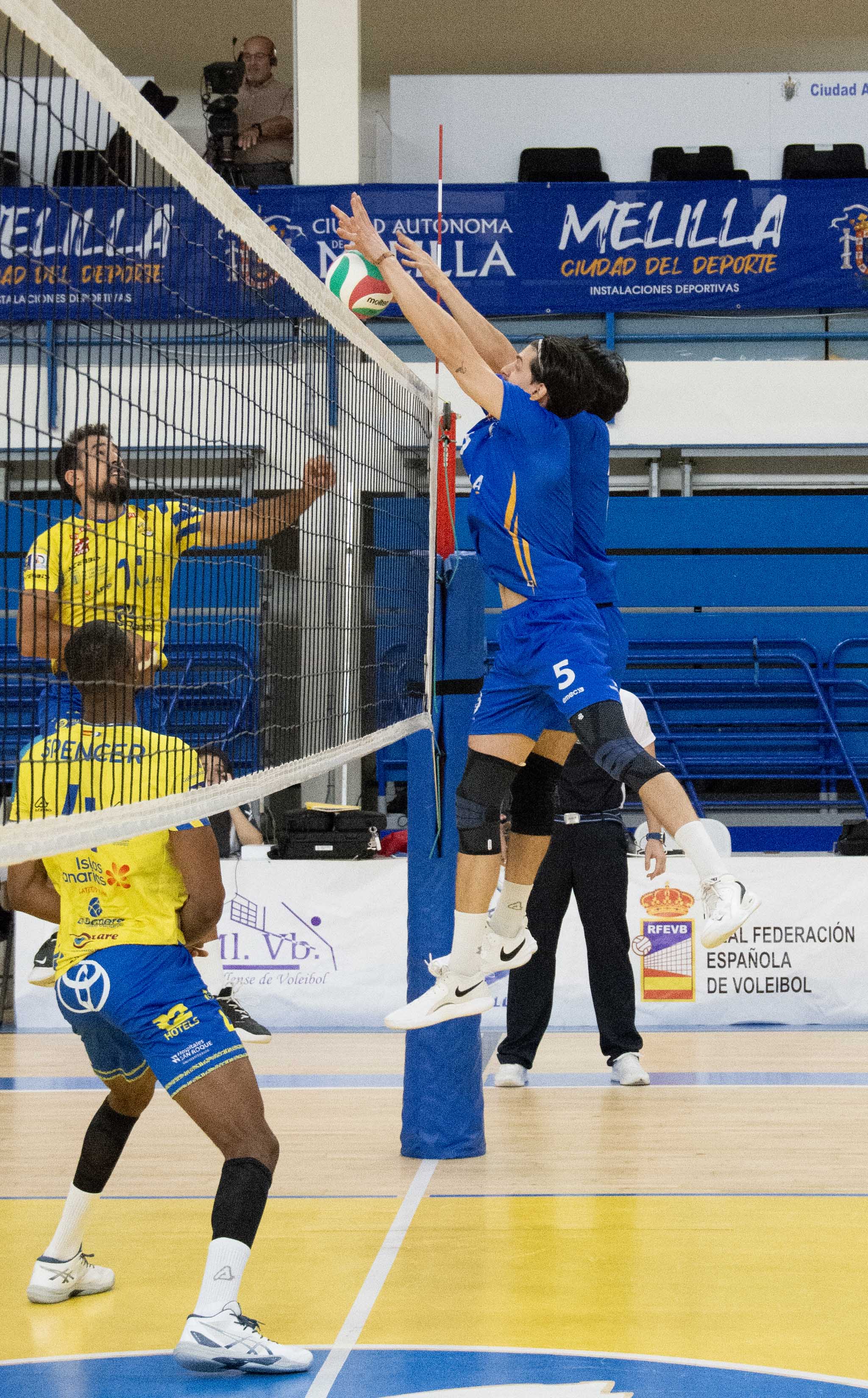en el primer set, donde brilló especialmente la altura de los saltos del hawaiano Keoni Thiim. No fue suficiente para vencer a un Guaguas que, aunque comenzó el partido por detrás, metió una marcha más en la segunda mitad del set (23-25). También tuvieron cerca el segundo set los locales (22-25), con una actuación especialmente destacable de Víctor Méndez. Se volvió a repetir la historia del primero y los canarios le dieron la vuelta a tiempo para poner a Melilla contra las cuerdas. La presión pudo con los gladiadores en el tercer set (21-25), donde los fallos de saque melillenses terminaron inclinando la balanza del lado de un Guaguas que, por el contrario, estuvo especialmente afinado en este área gracias a la acción de Emiliano Ramos.