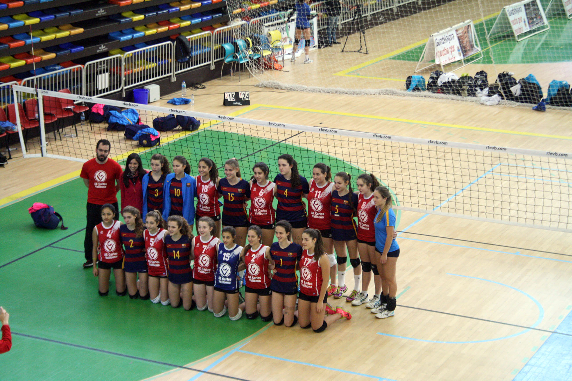 La competición que puso el broche final a la tercera edición de la Copa España fue el torneo cadete femenino 1 donde CVS Const. M. Morell Sóller remontó a CVB Barça en un espectacular choque resuelto en un agónico tiebreak. Las baleares mostraron su fe para hacerse con el triunfo y el título de su competición. La tercera plaza fue para Ribeira Sacra que controló en todo momento a Playas de Benidorm en la final de consolación.