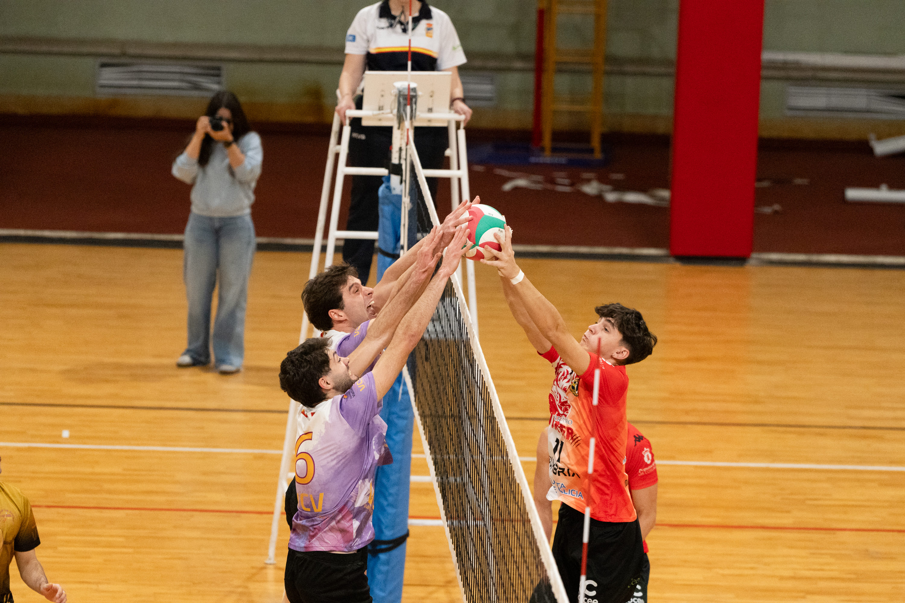 La jornada del Grupo A estuvo comprimida en la tarde del sábado y arrancó simultáneamente con tres partidos. Uno de ellos era uno de los cruciales de cara a la Copa Príncipe y vio como sus dos contrincantes, Vigo y Rotogal Boiro, disminuían sus opciones de forma drástica. En el caso de los vigueses, dependían de los resultados en otros partidos, pues la semana que viene descansan y esta era su última oportunidad de sumar. Respecto a los de Boiro, una victoria contundente los hubiera acercado a los puestos de clasificación. No fue así. Vigo se llevó el partido 3-2 y Boiro, aunque todavía podría obrar el milagro, no depende de sí mismo. En la otra cara de la moneda está Textil Santanderina, que con su victoria 3-0 frente a CID Jovellanos asegura su viaje a Pinto en enero. Intasa San Sadurniño venció 3-1 a Arenal Emevé y está a milímetros de la meta de la Copa Príncipe. Matemáticamente, solo una derrota a cero y la ayuda del cociente de sets podría darle el pase a un Boiro que necesita ganar la semana próxima. Por su parte, Universidad de Valladolid logró escapar de los puestos de descenso tras un apretado 3-2 contra CV Dumbría. Además, Suac Canarias continúa construyendo su remontada, ladrillo a ladrillo, con un 0-3 frente a Galdakao Boleibol Taldea que los coloca en quinta posición.