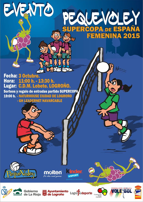 Este evento Pequevoley promocional se celebrará el sábado de 11 a 13:30 horas y focalizará la atención de todos los aficionados más jóvenes de la región y coincide con la organización en el mismo recinto de la Supercopa Femenina. El CDM Lobete reunirá a los dos grandes dominadores del voleibol femenino nacional de la última temporada, Naturhouse Ciudad de Logroño y GH Leadernet Navarcable. Los jóvenes participantes en el Evento Pequevoley podrán formar parte de la Grada Pequevoley dentro de la disputa por la tarde a las 19 horas de la Supercopa Femenina.