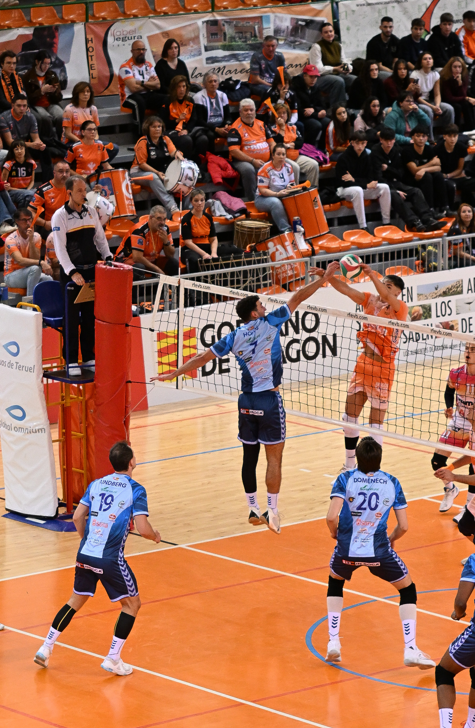 Victoria en tres sets para Grupo Herce Soria que mantiene la condición de invicto tras derrotar en Los Planos a Pamesa Teruel Voleibol. Los sorianos dominarían con el saque y el bloqueo al conjunto aragonés, que pese al apoyo de su afición no pudo contrarrestar el acierto rival en los dos primeros parciales. El tercer set se presentó más igualado, con Emilio Ferrández y César Irache liderando al bloque de Fabián Muraco para nivelar un 18-24 en contra que daría paso a un agónico desenlace, no apto para cardiacos y que terminó aprovechando el equipo de Toribio tras un remate de Viktor Lindberg por un espectacular 34-36.
