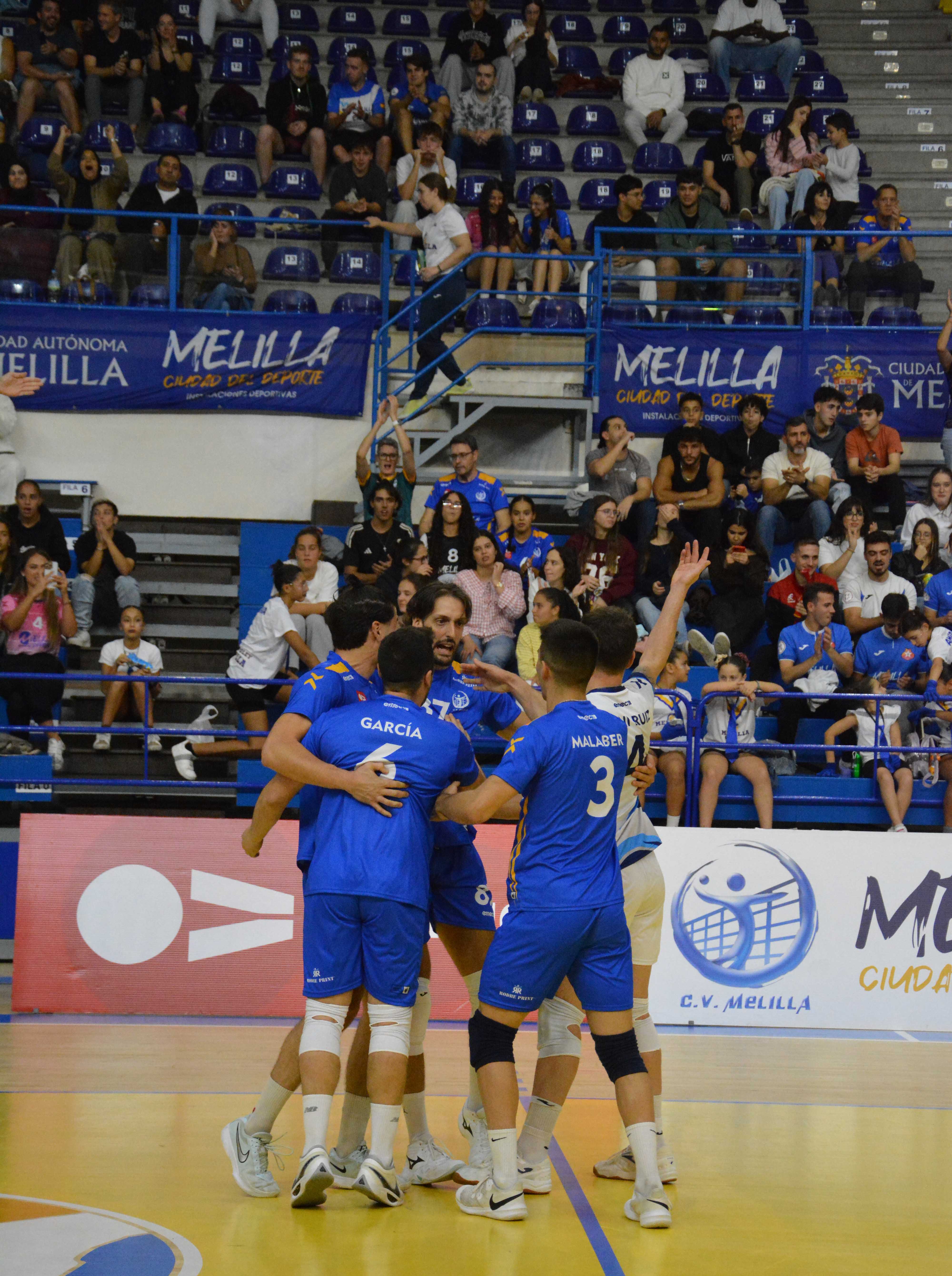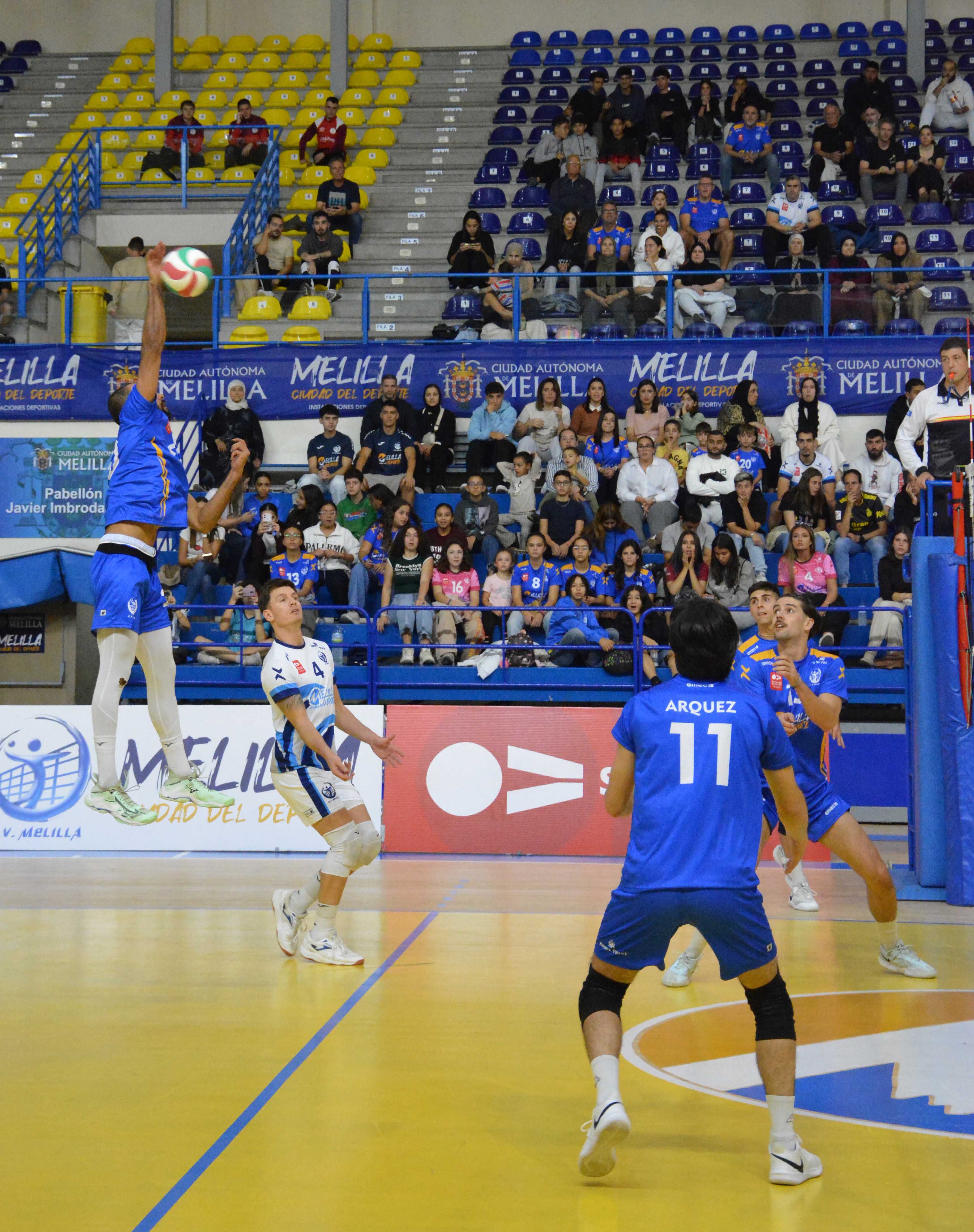 Conectabalear CV Manacor mantiene la condición de invicto tras derrotar en un apretado choque a CV Melilla. Los norteafricanos vieron como los desenlaces de los dos primeros sets les eran esquivos. El conjunto de Alexis González sabía cerrar los dos primeros parciales con una gran actuación coral y ponerse en camino a la victoria. No bajarían los brazos los melillenses para recortar distancias, con otro set resuelto por la mínima diferencia y también por encima del punto 25. En el set definitivo, los baleares no dieron opción y cerraron el choque impidiendo el desempate, con 20 puntos de Fausto Manuel Díaz.