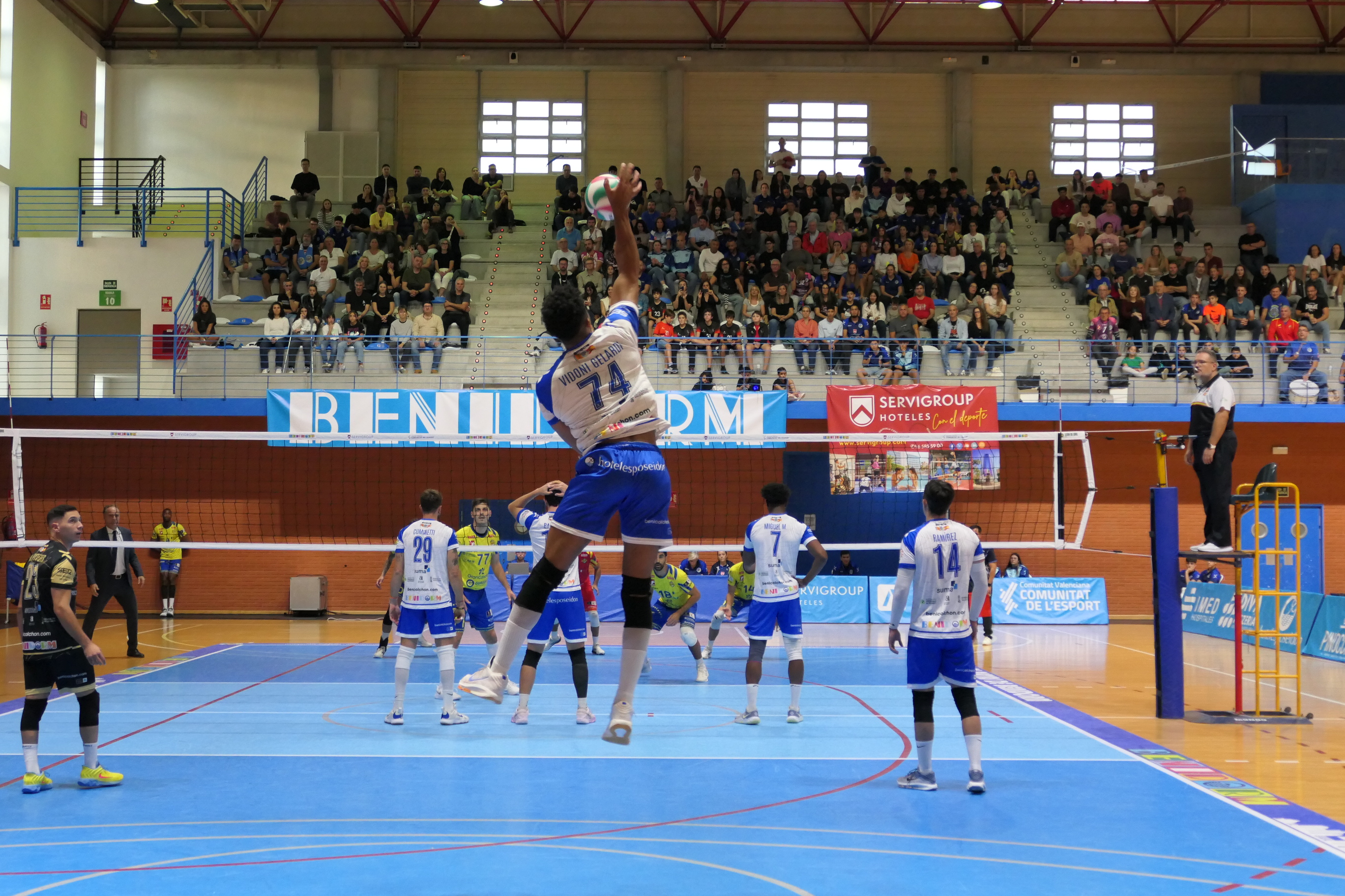 CV Guaguas cedió su primer set de la temporada en un encuentro en el que Servigroup Playas de Benidorm aprovechó el cansancio grancanario de la eliminatoria continental. El primer set tuvo dominio alicantino pero desenlace a favor de los campeones. Los pupilos de Adriano Lamb no pudieron aprovechar las dos bolas de set disfrutadas y la experiencia del cuadro de Sergio Miguel Camarero, que dio minutos a los menos habituales, les permitió voltear el marcador. Los grancanarios apretarían los dientes para poner el 0-2 en el marcador, y asistir ante una demostración de coraje local, que guiados por los puntos de Miguel Ángel Martínez soñaban con una reacción que la pegada del Guaguas impediría.