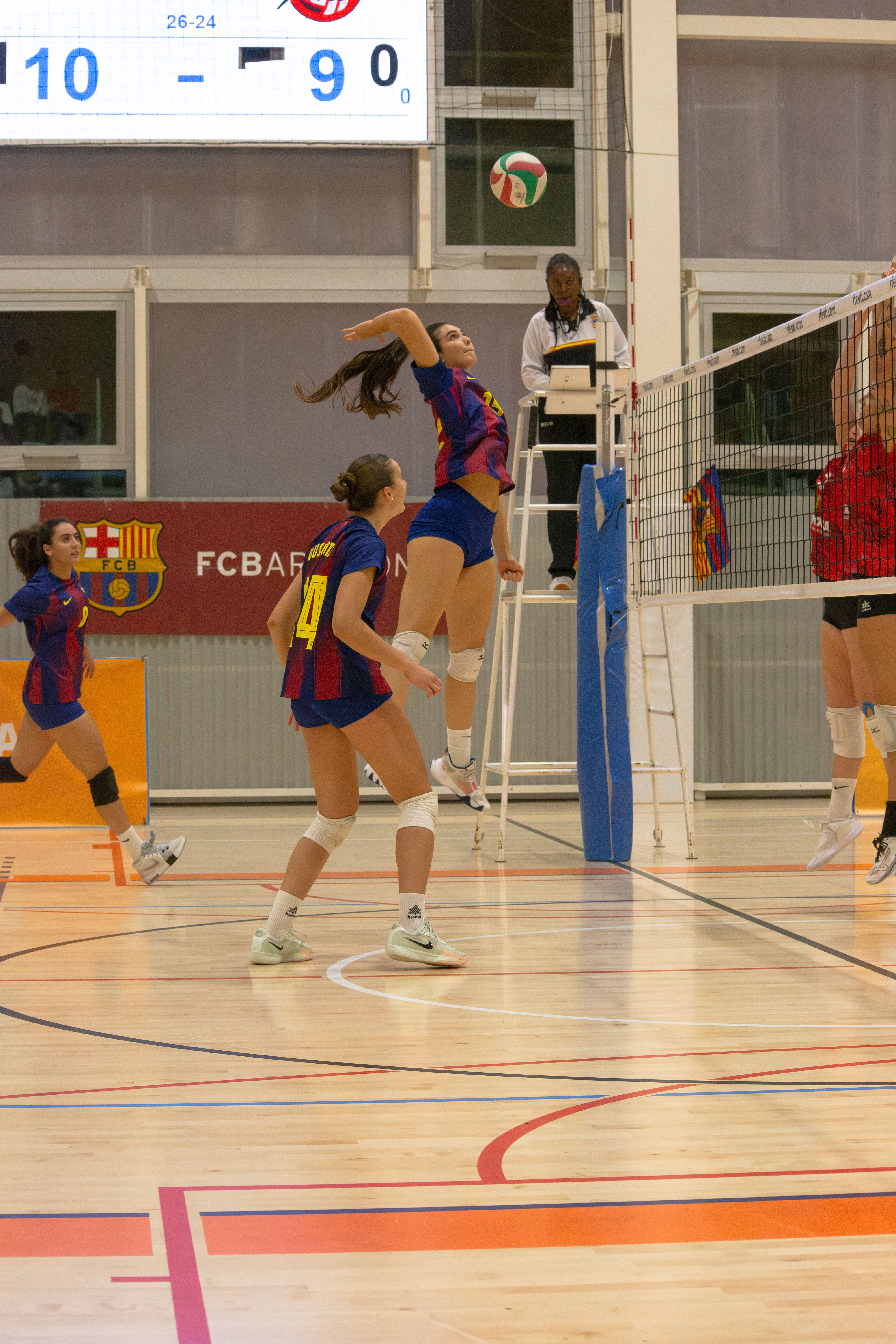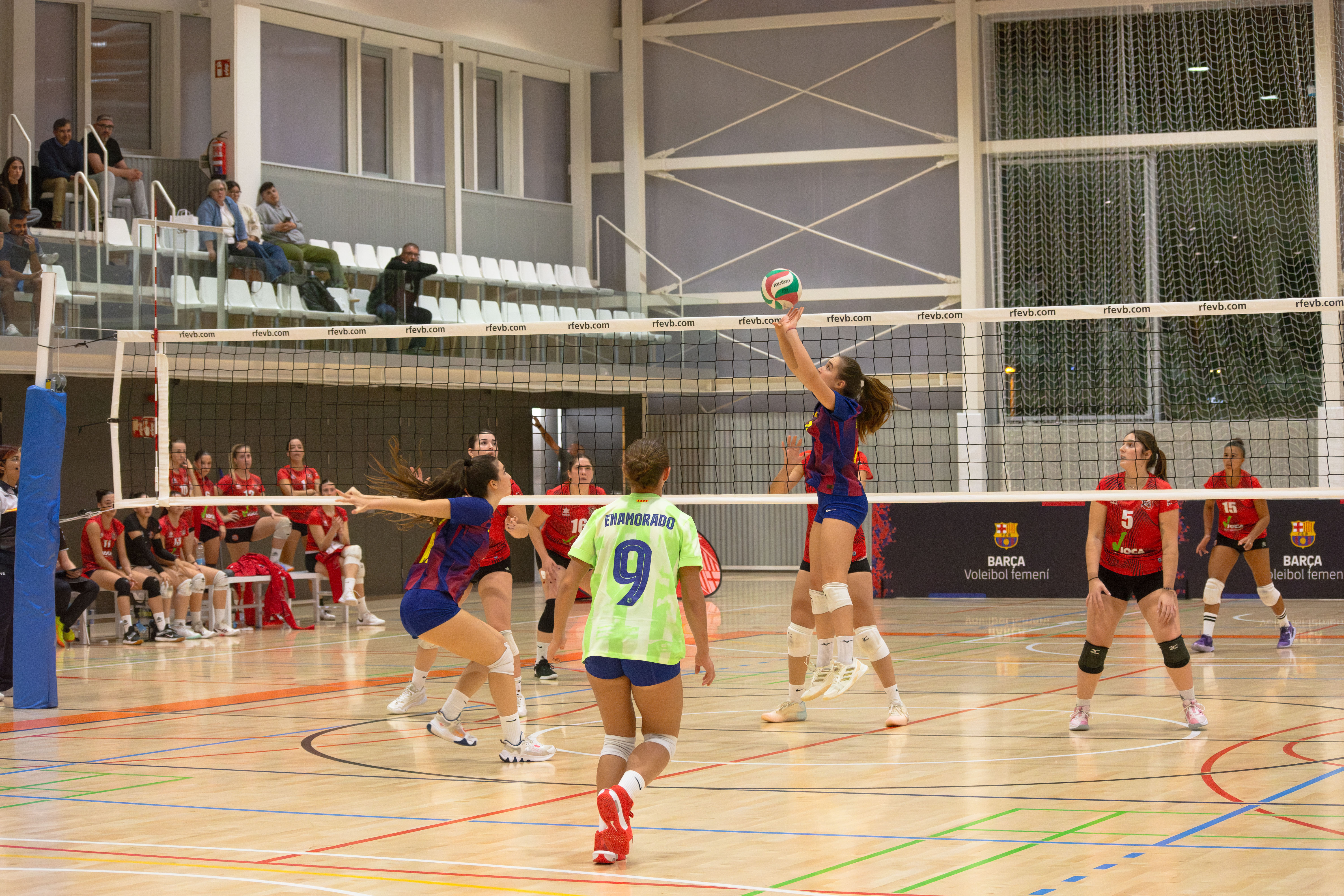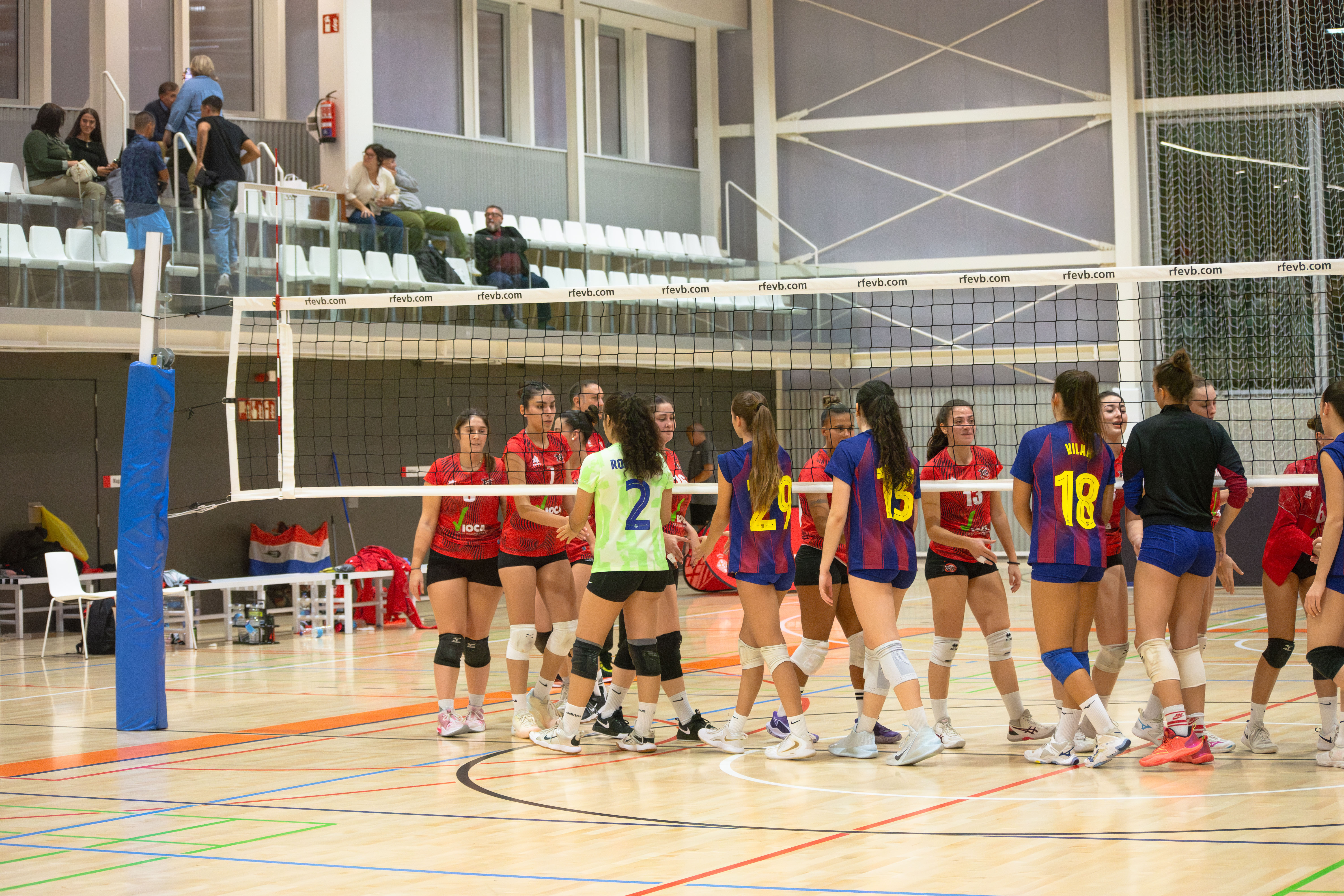 La tercera clasificada, CVB Barça, se impone con autoridad 3-0 a CV Sant Quirze. El Barça dominó por completo los dos primeros sets, acumulando veinte puntos más que su rival. El tercer parcial fue más equilibrado, pero las locales demostraron solidez para cerrarlo y asegurar la victoria.
