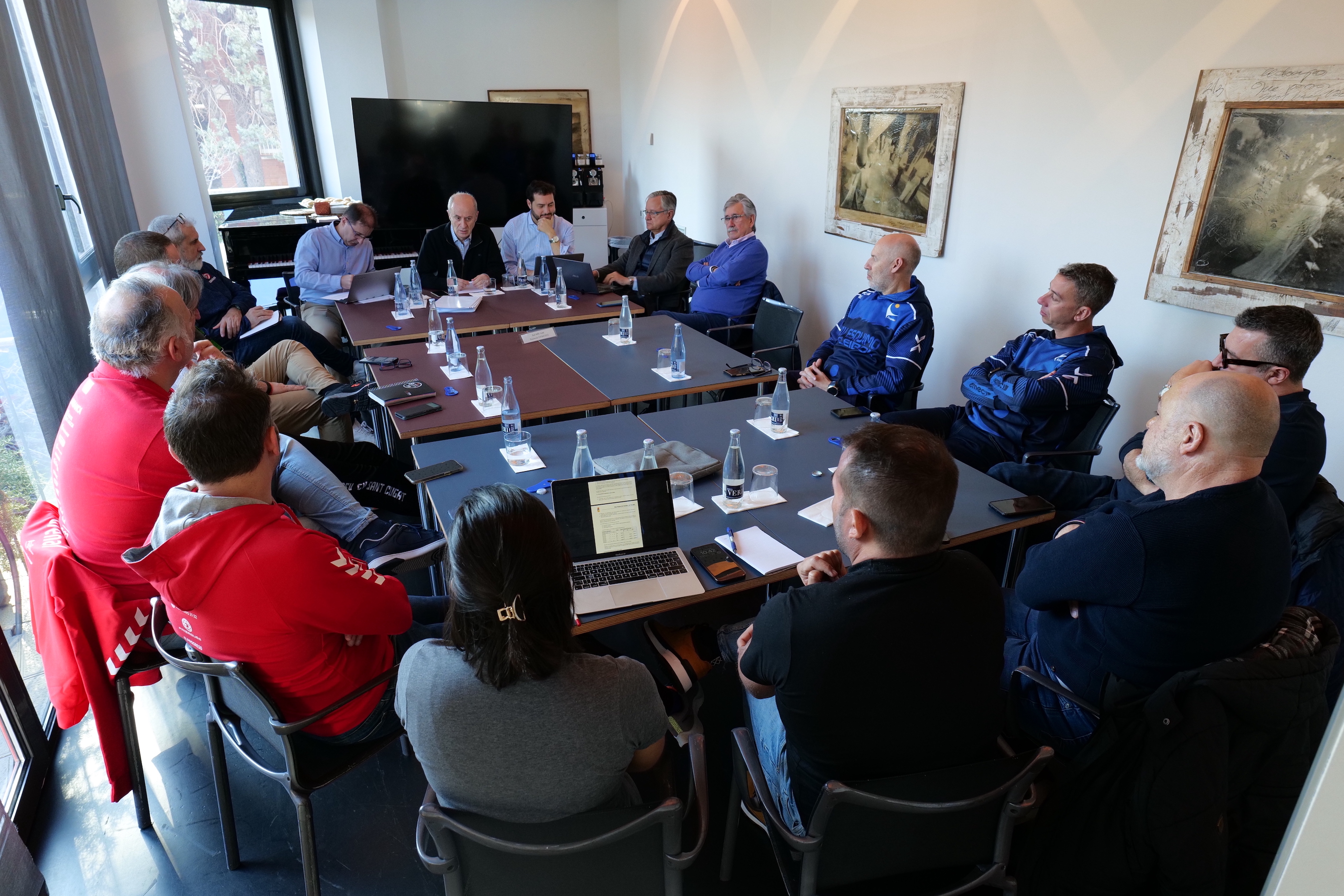 La reunión entre clubes y RFEVB, de carácter informativo y consultivo, ha tenido lugar en pleno desarrollo del Torneo del KO que se está celebrando en Sant Cugat del Vallés desde ayer viernes hasta mañana domingo. El presidente AMS dirigió una productiva sesión consultiva de trabajo, en la que ambos estamentos expresaron sus impresiones sobre la situación que rodea a la máxima categoría del voleibol nacional, y sentaron las bases para la tradicional reunión de fin de temporada.