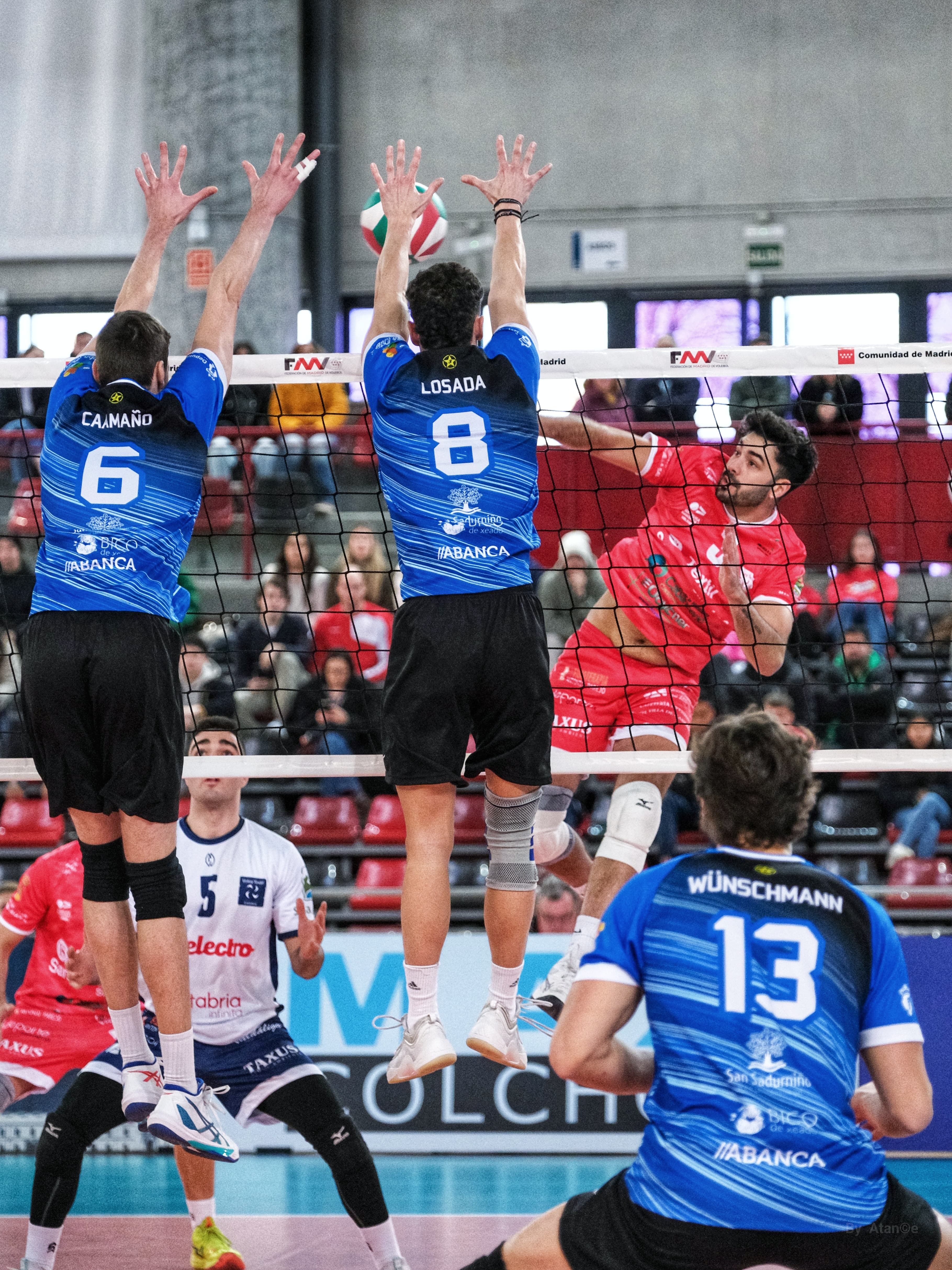 La momentánea lesión de Rafael Albornoz frenó a Intasa San Sadurniño y Textil Santanderina recuperó el control del marcador del Príncipe de Asturias de Pinto en la entrada a la zona definitoria del set con dos bloqueos de Calzón y Ruda. El regreso del chileno no bastó para recuperar los dos puntos de desventaja y Textil Santanderina golpeaba primero en el encuentro por la mínima 25-23.