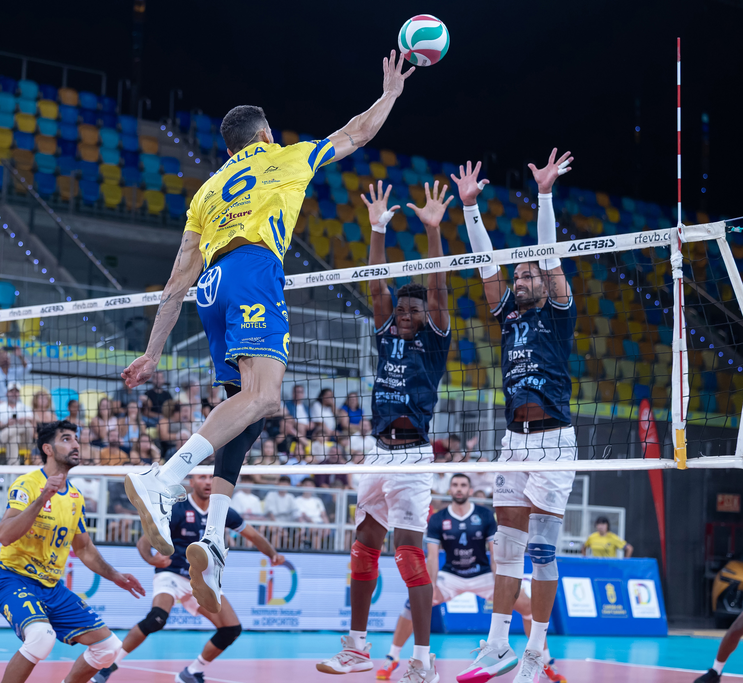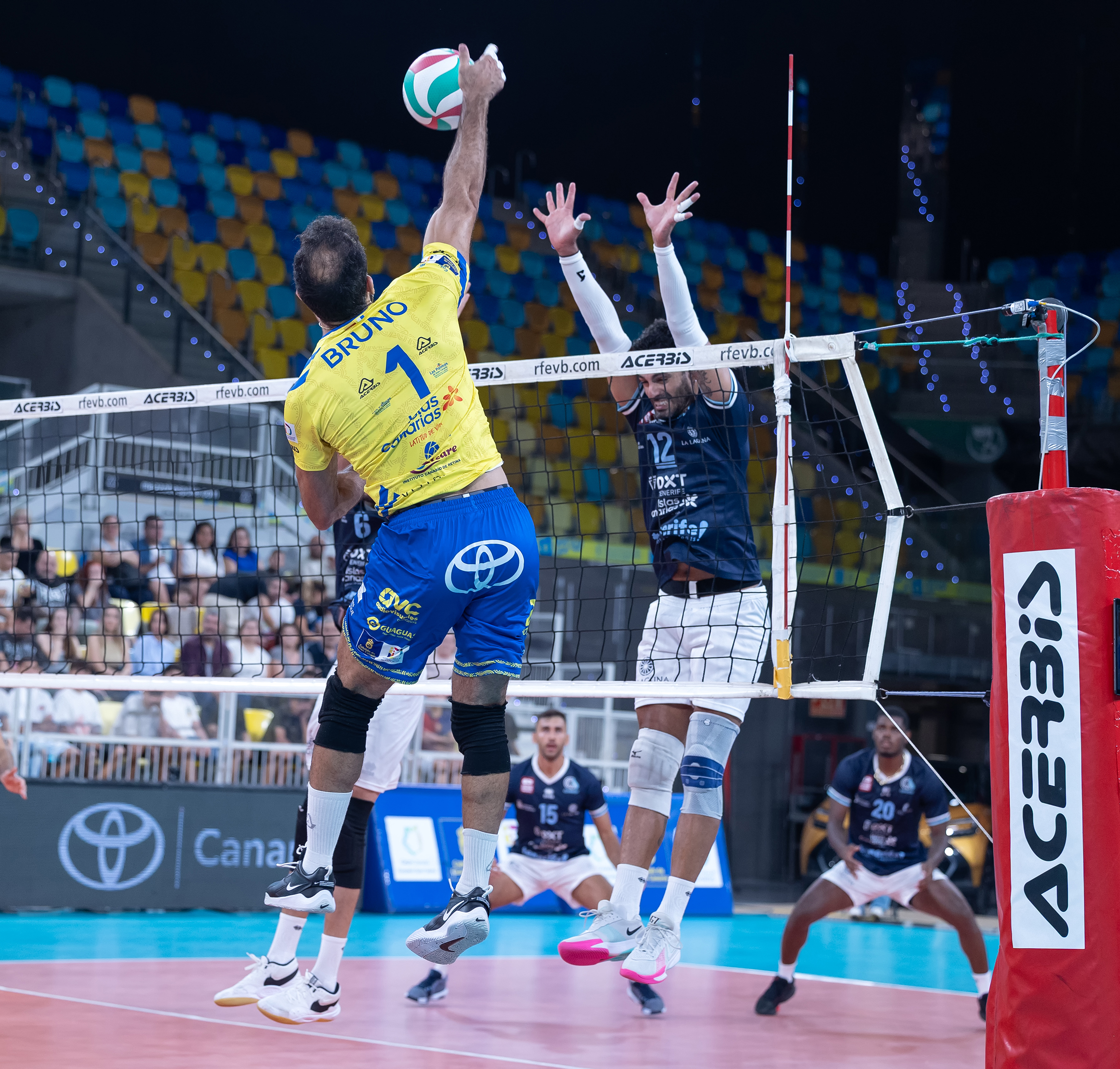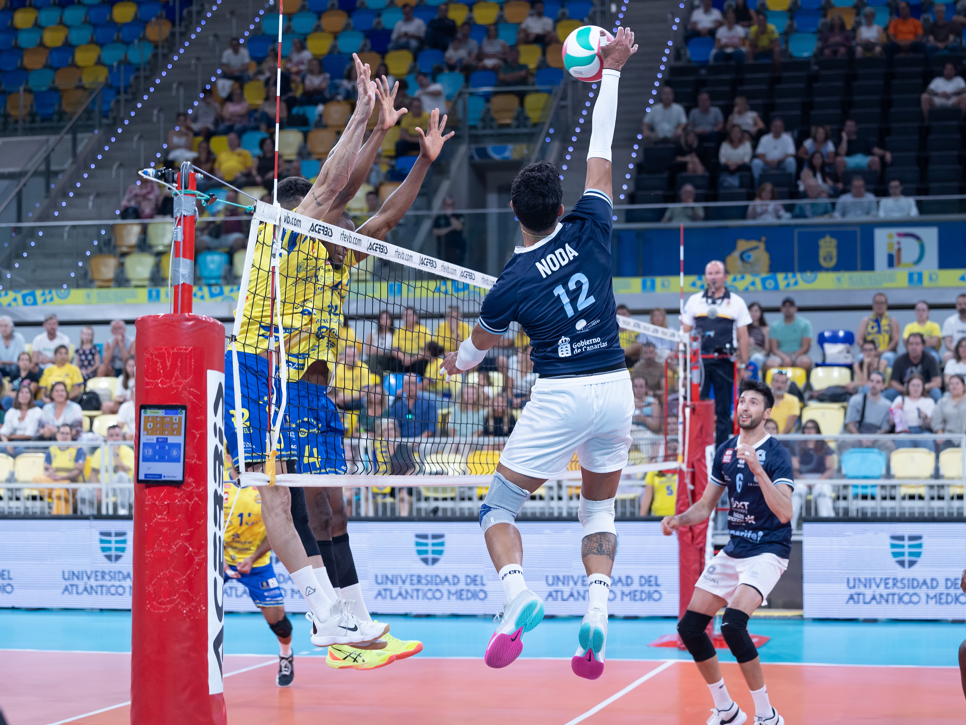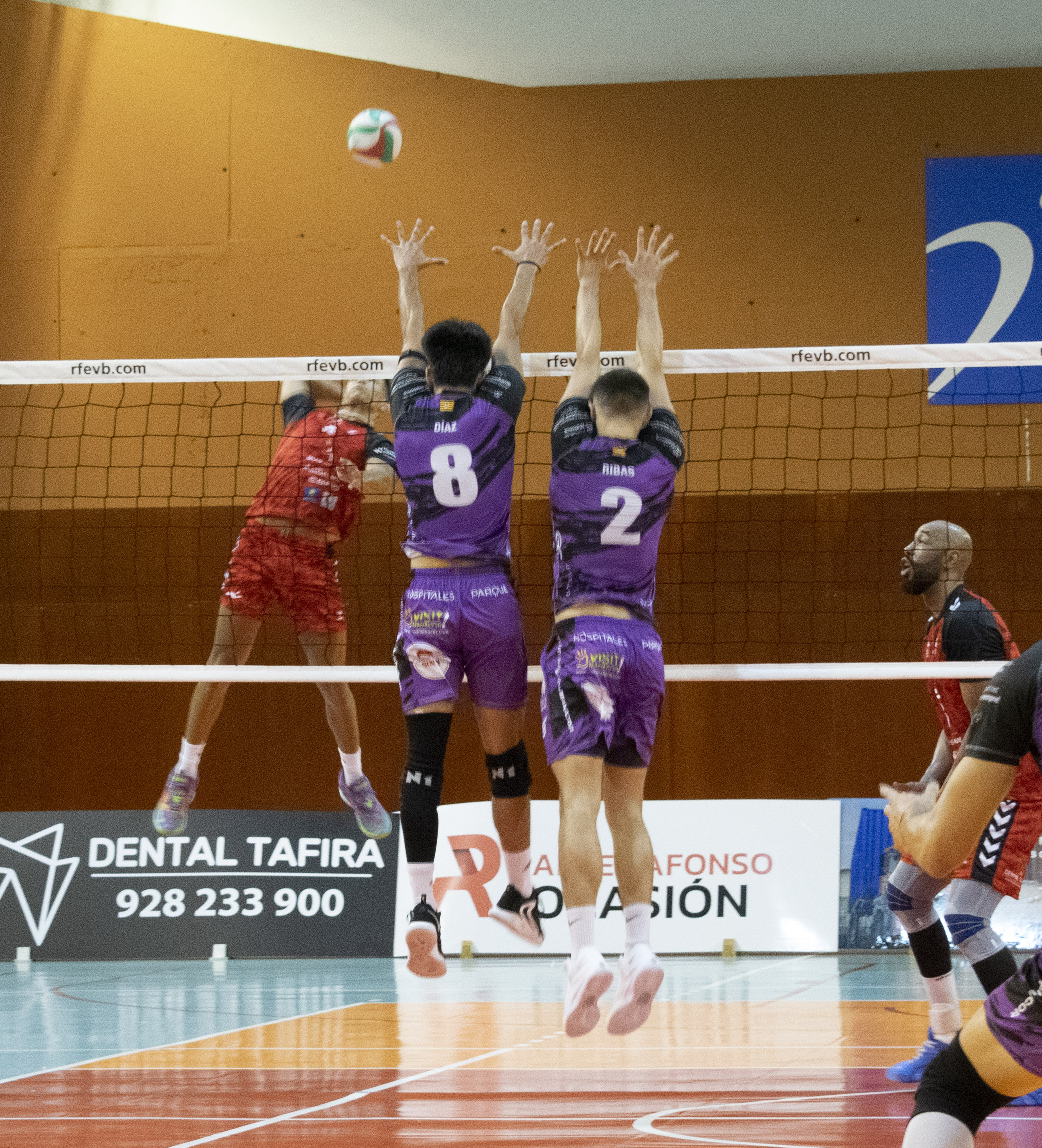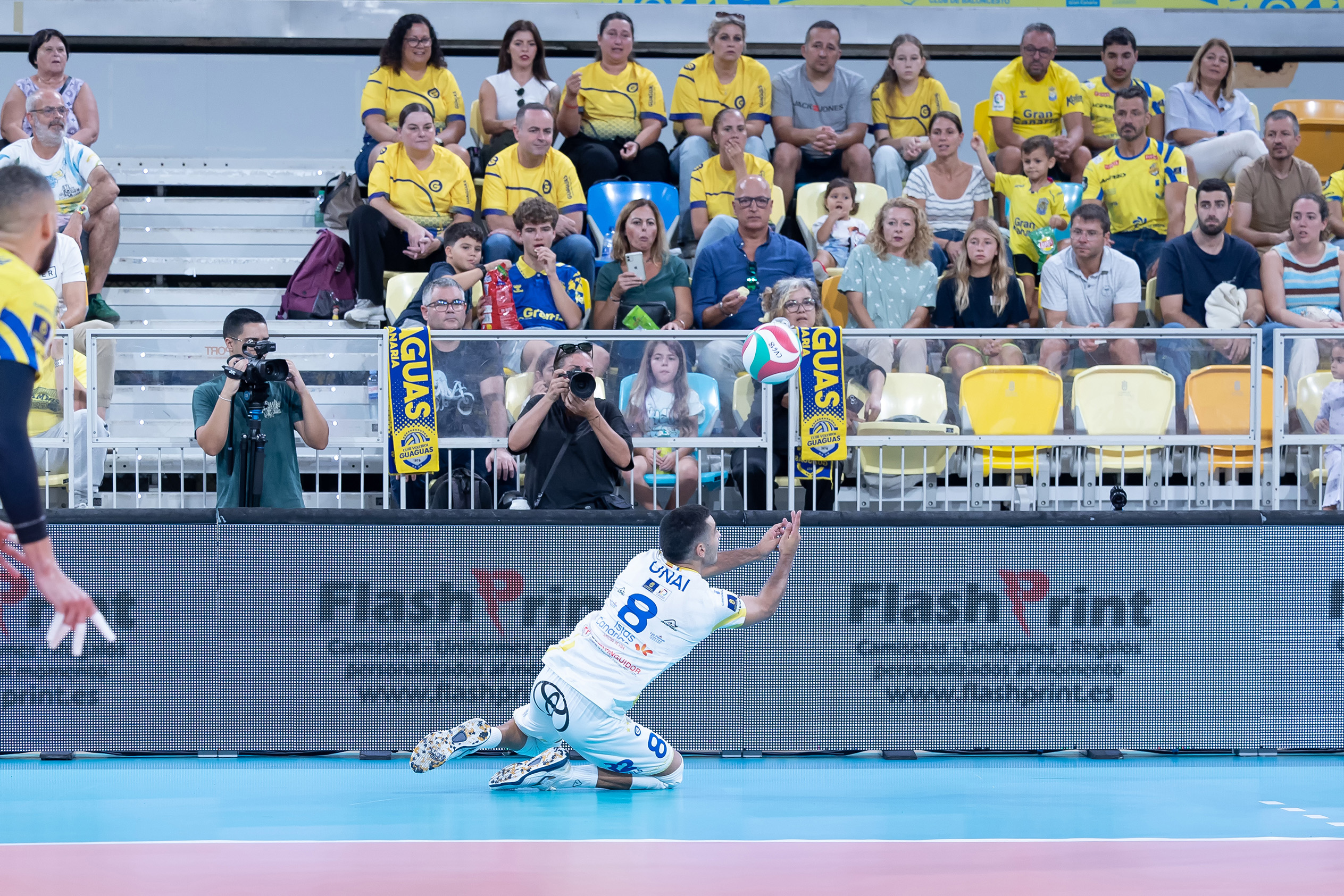CV Guaguas arrancó la defensa del título con un claro triunfo sobre Cisneros La Laguna en el derby canario. Los pupilos de Sergio Miguel Camarero sacaron partido de la buena dinámica arrastrada de la competición continental y conquistaron el primer set de forma rápida. La distribución de Miguel Ángel de Amo aprovechaba sus múltiples recursos ofensivos para hacer que cuatro de sus compañeros rondasen la quincena de puntos. El bloque de Miguel Rivera iría mejorando durante el choque con los puntos de Mateus Frac, pero la solidez grancanaria cerraría el choque por la vía rápida.