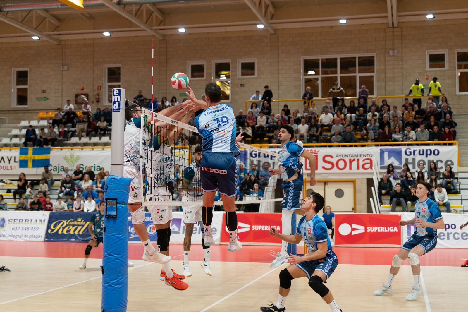 Grupo Herce Soria se hizo con el duelo histórico de ciudades ante Unicaja Costa de Almería. Los sorianos se mostraron más acertados en los momentos clave del segundo y cuarto set, con los puntos de Hoyos y Moreno para superar al combativo conjunto de Pablo Ruiz. Los sorianos vieron como el bloque ahorrador equilibraba el encuentro y dispondría de opciones de forzar el desempate, algo que seis puntos del “Tiburón” Moreno impidieron para pasar del 21 iguales al 28-26 definitivo del último set.