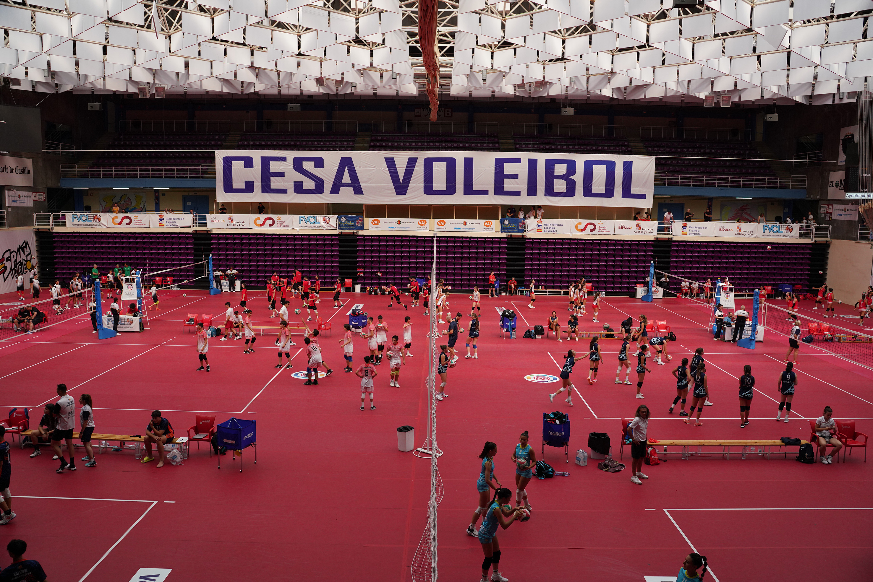 El Polideportivo Piusuerga, epicentro del CESA de Voleibol con sus siete pistas de uso simultáneo, acogió el estreno de las competiciones infantil masculina y femenina. Los encuentros celebrados a lo largo del jueves permitieron definir las clasificaciones de la fase de grupos, que se cerrarán en la matinal del viernes y definir a los favoritos.