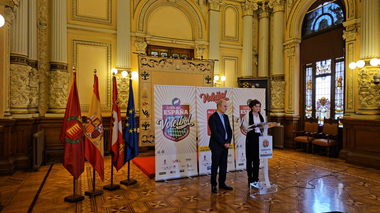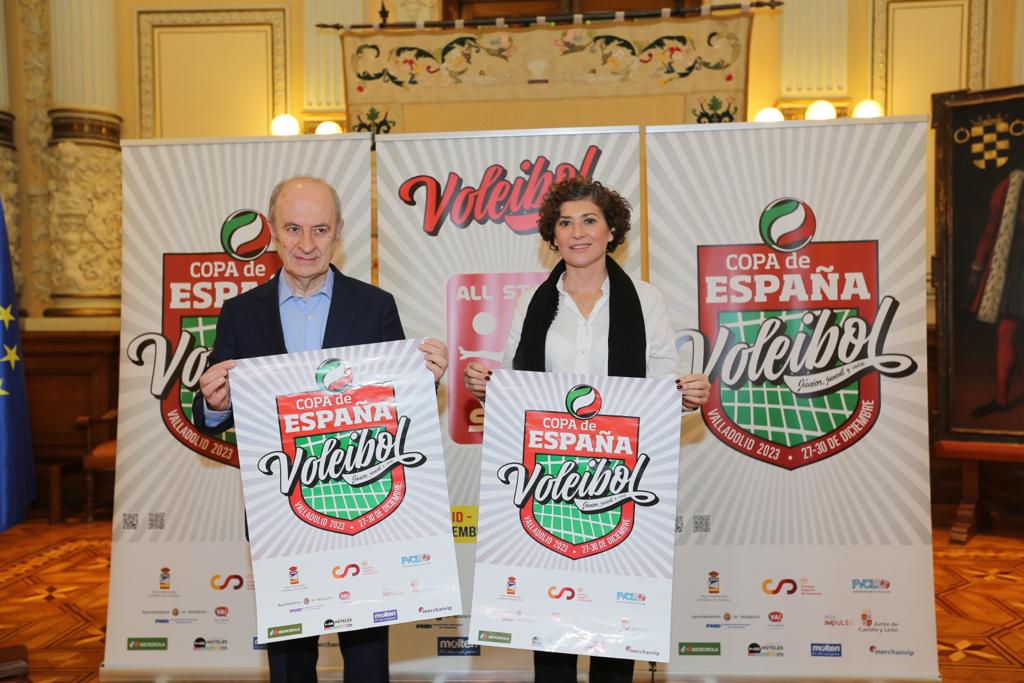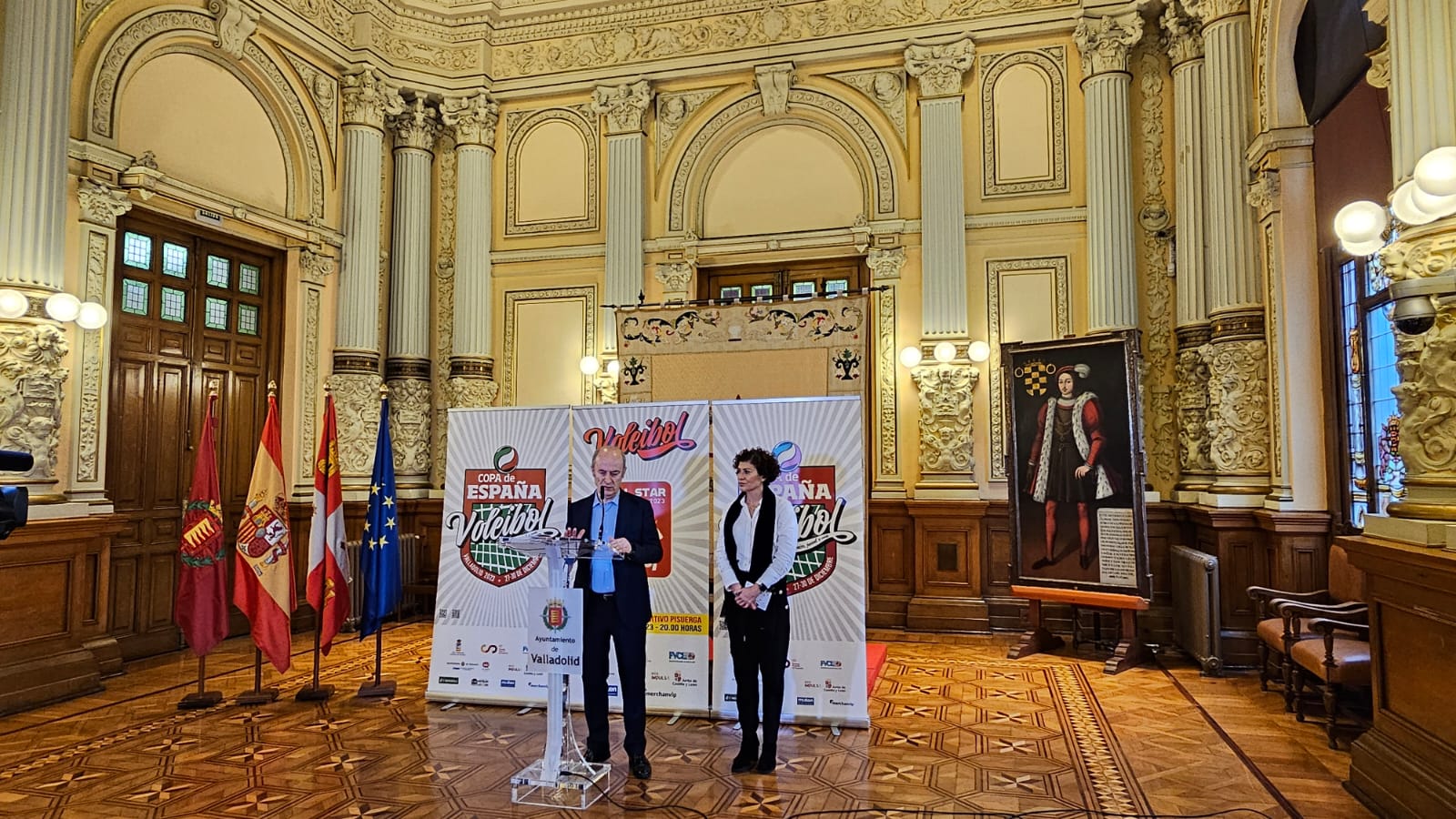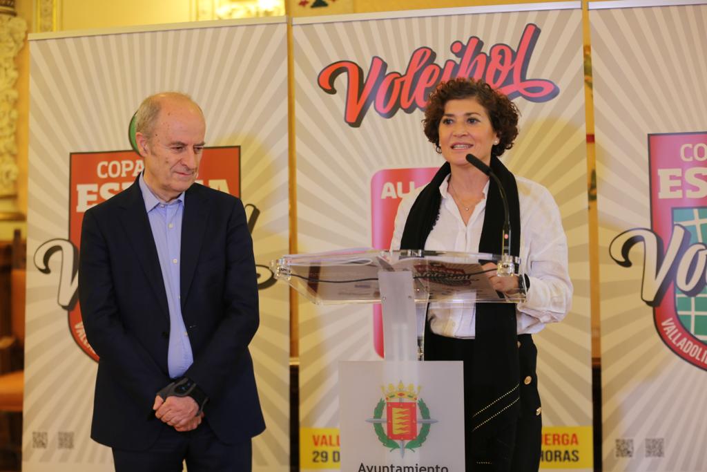 La concejala de Participación Ciudadana y Deportes, Mayte Martínez, y el presidente de la Real Federación Española de Voleibol, Agustín Martín, han presentado hoy en el Salón de Recepciones del Ayuntamiento de Valladolid la Copa de España de Voleibol júnior, cadete y juvenil, que se celebrará en la ciudad entre el 27 y el 30 de diciembre, con récord de participantes, 5.670, y de equipos, 405. Cabe mencionar que el Ayuntamiento de Valladolid reconoció a la Copa de España de Voleibol júnior, juvenil y cadete con el Premio ‘Valladolid Ciudad Deportiva 2022’, en su categoría de Mejor Evento deportivo.