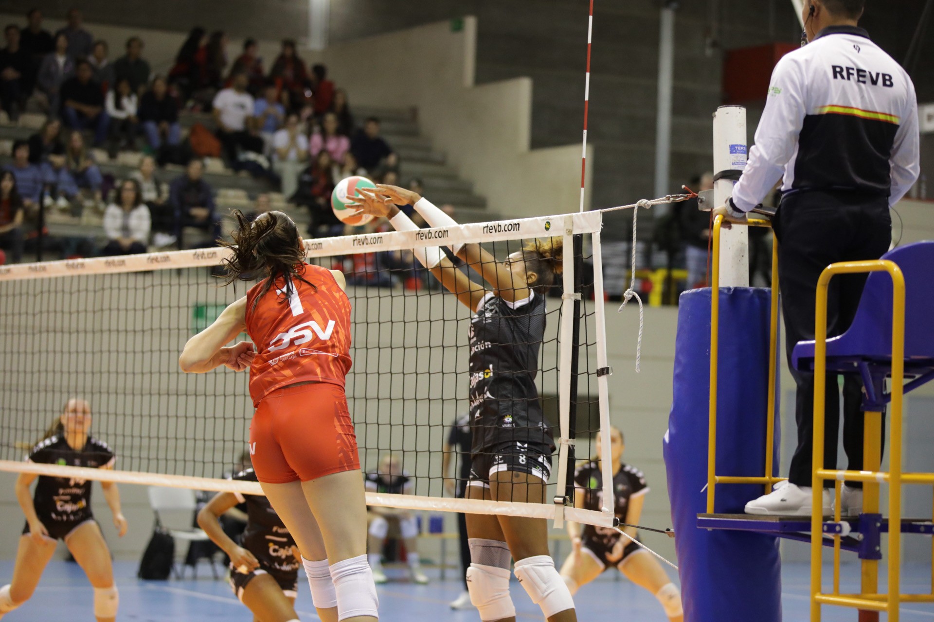 El primer set ha arrancado con máxima igualdad, con ambos equipos alternando aciertos y manteniendo un ritmo ofensivo elevado. Sant Cugat ha encontrado fluidez a través de Céci y Ane Cengotitabengoa, muy presentes en la fase inicial, mientras que Cajasol ha respondido con la fortaleza en la red de sus centrales Evans y Sansó. En la recta final, un par de imprecisiones del conjunto andaluz han permitido que Sant Cugat tomara la iniciativa y cerrara el primer parcial.