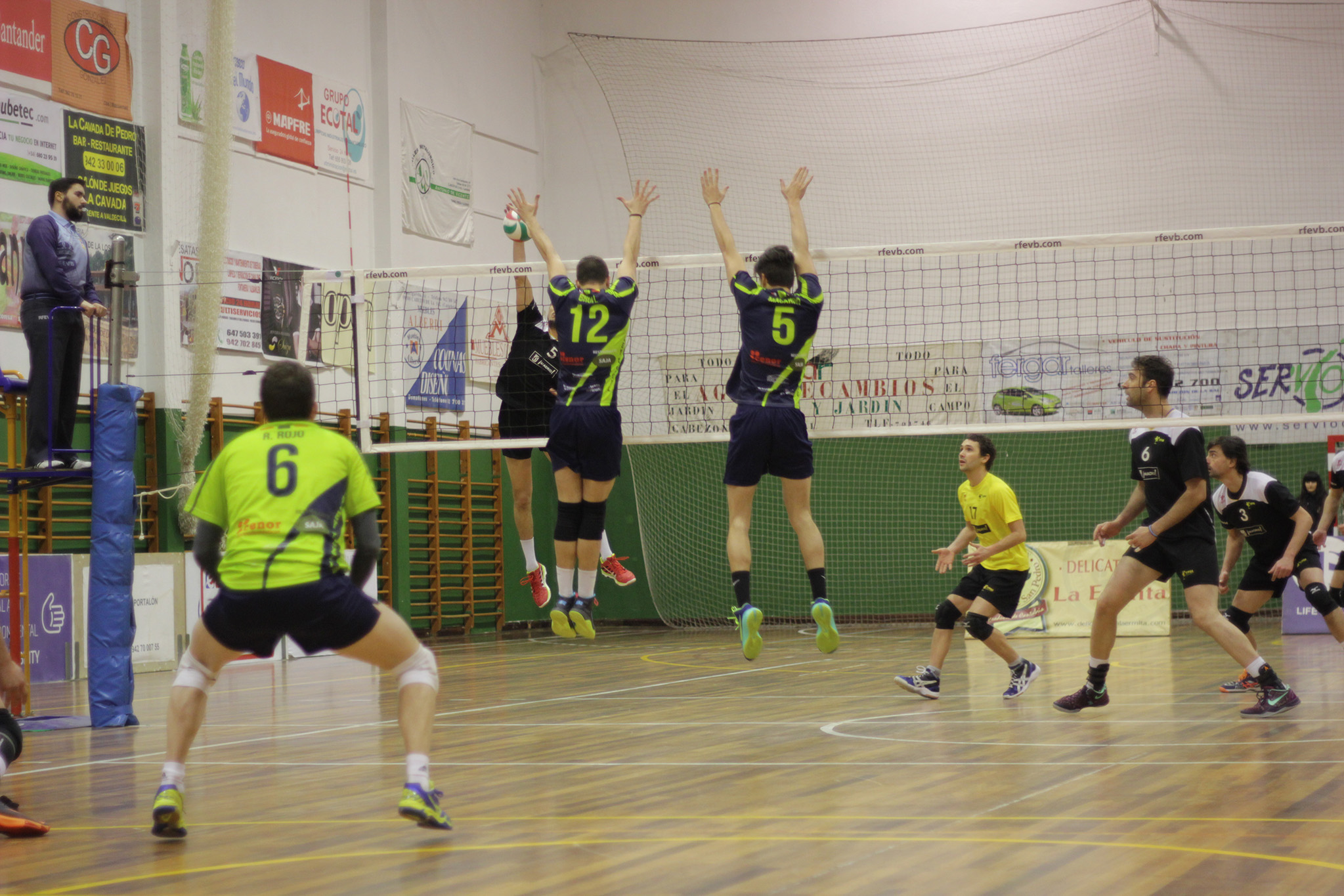 Esa novedad hizo que el equipo se mutliplicara en el apartado defensivo, con el líbero Roberto Rojo destacando una vez más, perfectamente secundado por un Víctor Brull que se convirtió en protagonista en el arranque también en ataque, logrando mantener la iniciativa hasta que Fran Calzón al saque consiguió que el marcador pasara del 6-6 al 10-6 y así se consolidara una ventaja que ffue imposible de reducir para los visitantes, que alternaban buenos ataques con errores sorprendentes en el servicio. Así, el primer set transcurrió a gran velocidad y el Voley Textil se lo anotó por 25-20.